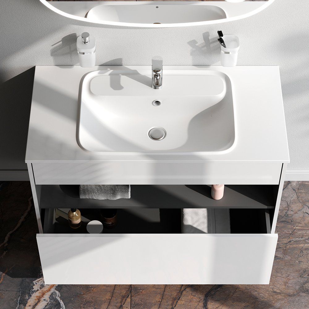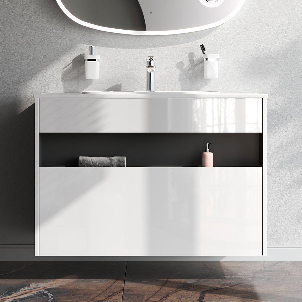 Погрузитесь в мир утонченной функциональности с тумбой с раковиной AM.PM Func 100 в белом глянце. Эта стильная мебель для вашей ванной комнаты отличается мягким открытием и закрытием ящиков благодаря скрытым направляющим с системой soft close. Поверхность изделия покрыта экологически чистыми полиакриловыми эмалями, применена особая технология покраски в 7 слоев, что обеспечивает стойкость насыщенного цвета, долговечность и превосходство над аналогами ведущих немецких брендов автоэмалей.