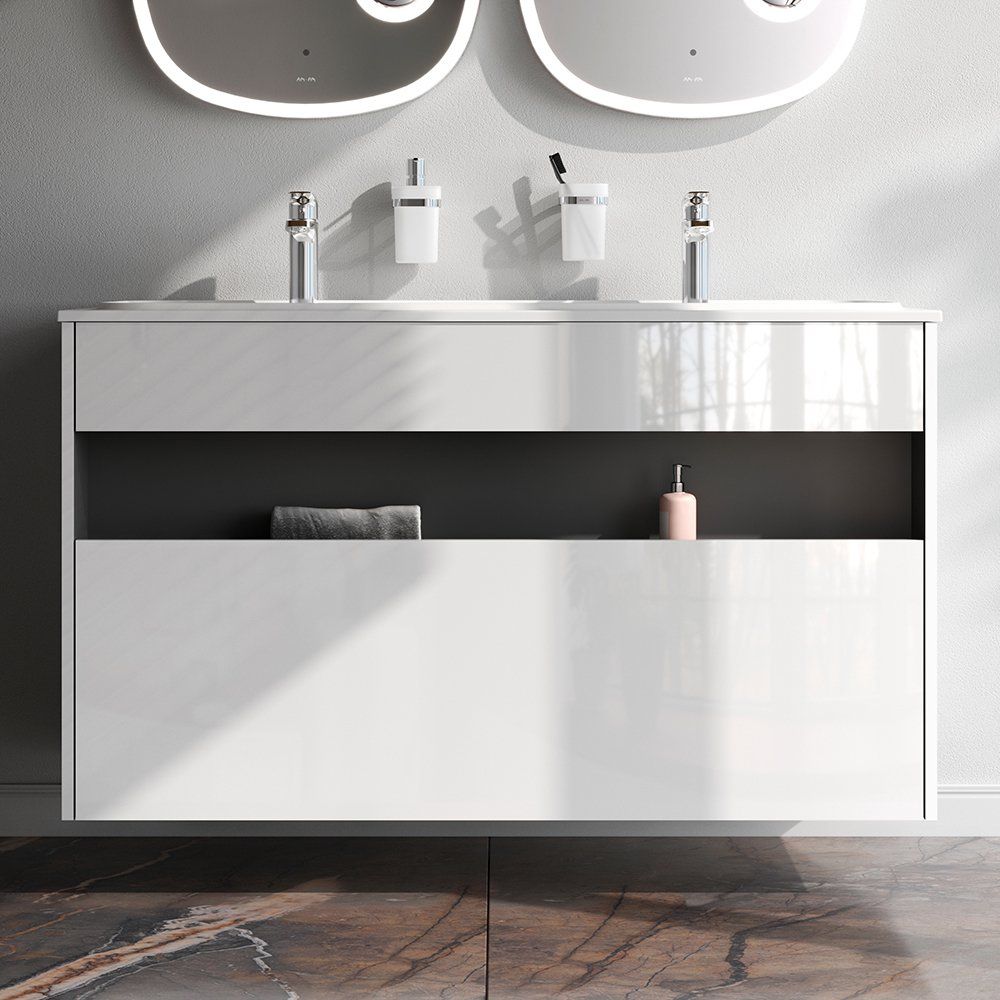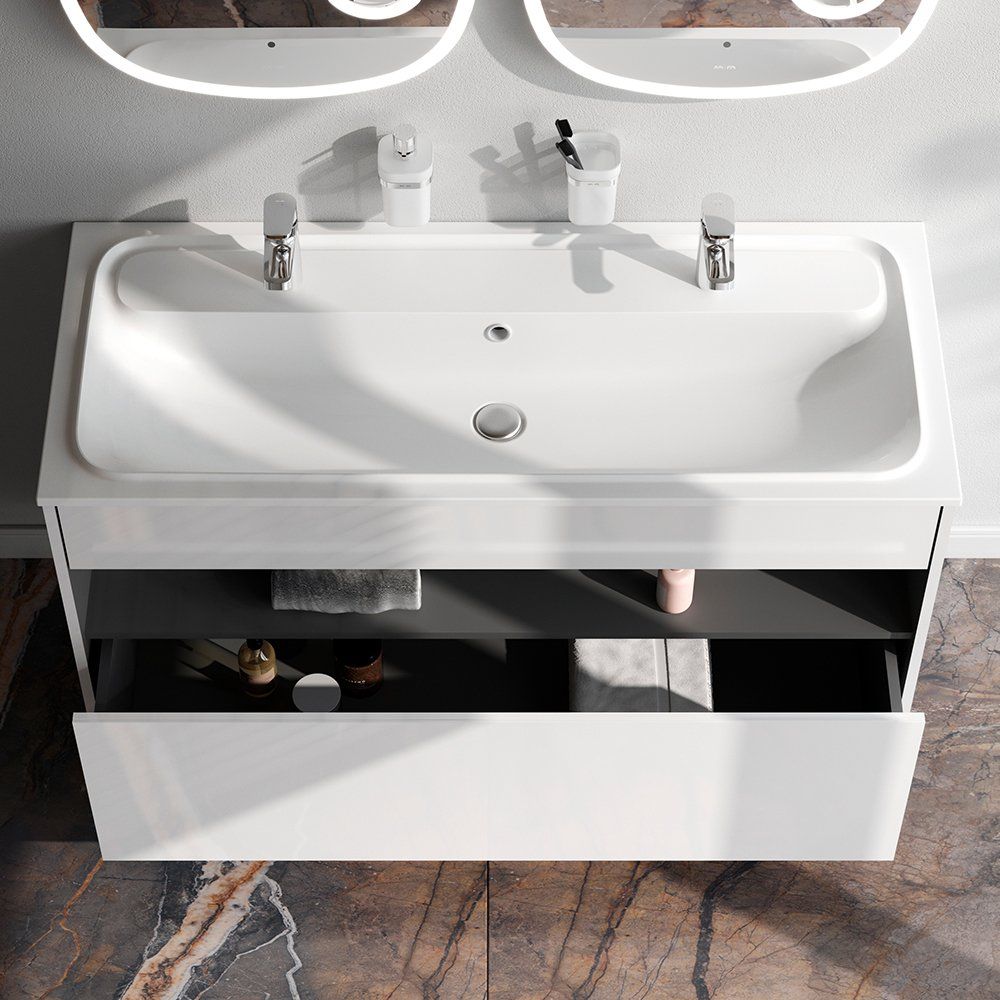 Представляем вам тумбу с раковиной AM.PM Func 120 в стильном белом глянце — идеальный выбор для вашей ванной комнаты. Эта мебель отличается мягким открытием и закрытием ящиков благодаря современной системе soft close с направляющими скрытого монтажа. Экологически чистые полиакриловые эмали, используемые в отделке тумбы, гарантируют долговечный и насыщенный цвет, превосходящий стандарты ведущих немецких автопроизводителей.