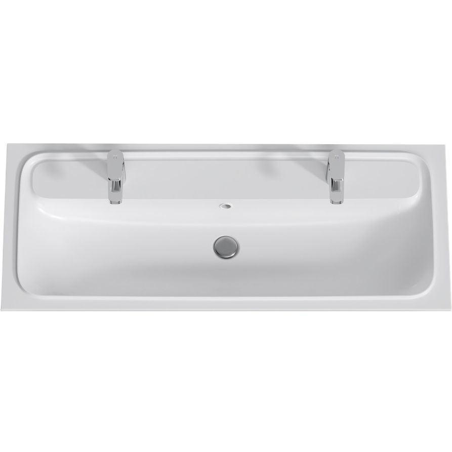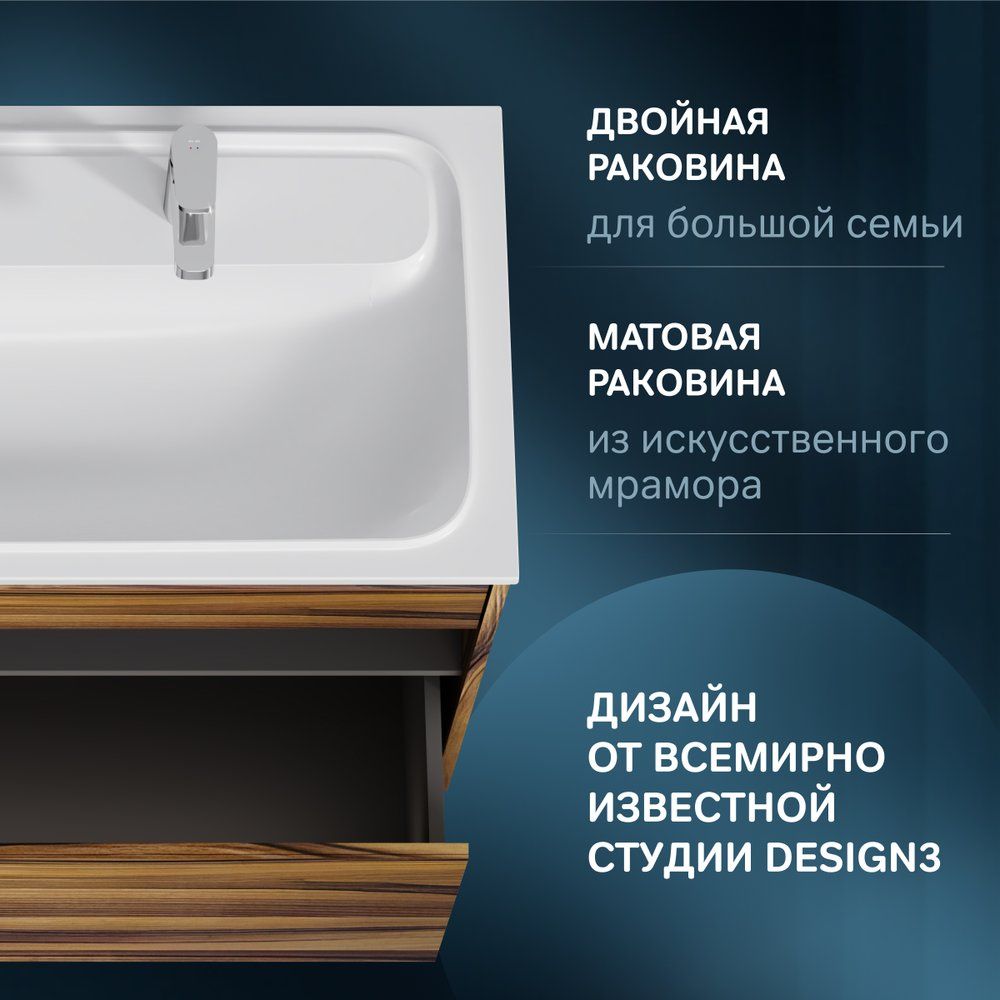 Тумба AM.PM Func 120 из ЛДСП имеет размеры 80x49x70 см и покрыта ламинатом, что обеспечивает защиту от влаги и эстетичный вид. Раковина размером 80,8x49,2 см выполнена из белого матового искусственного мрамора, устойчива к загрязнениям и лёгка в уходе. Комплект оснащён механизмом доводчика для плавного закрывания ящиков, имеет слив-перелив и два готовых отверстия под смеситель. Гарантия на комплект составляет 3 года, что подтверждает высокое качество материалов и сборки. Производство — Германия.