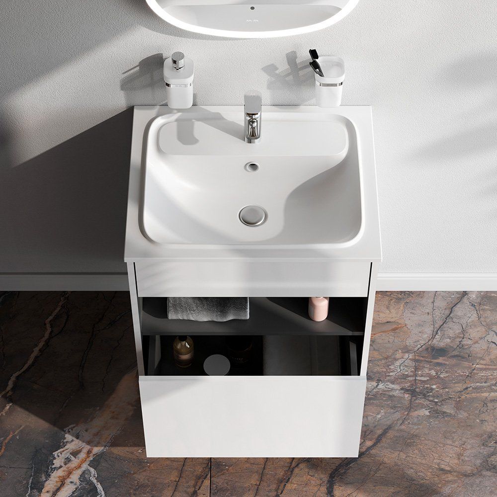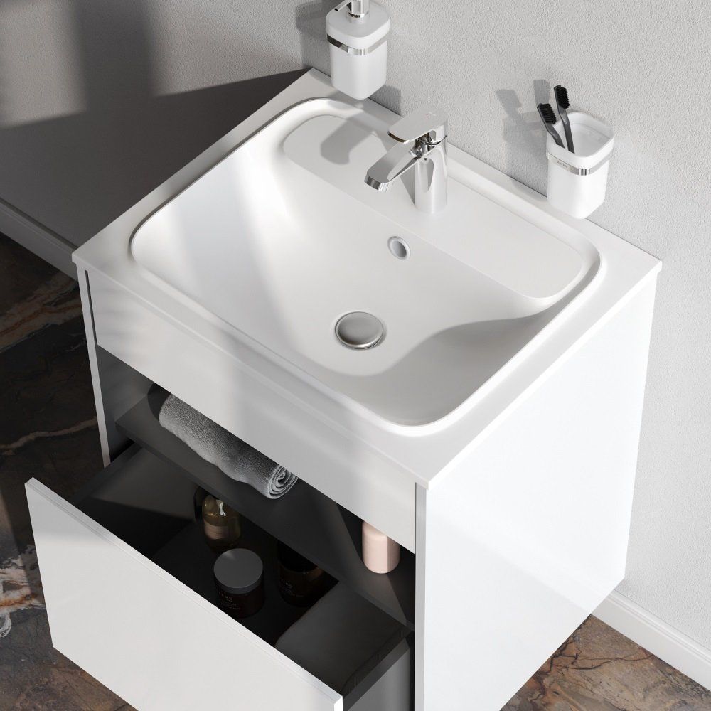 Тумба с раковиной AM.PM Func 60 белый глянец — это идеальное сочетание стиля и функциональности для вашей ванной комнаты. Впечатляющая глянцевая поверхность, созданная с использованием передовой технологии покраски в 7 слоев, обеспечивает насыщенный цвет и долговечность покрытия. Благодаря скрытым направляющим с системой soft close, выдвижные ящики открываются и закрываются плавно и бесшумно, что добавляет комфорта в использование.
