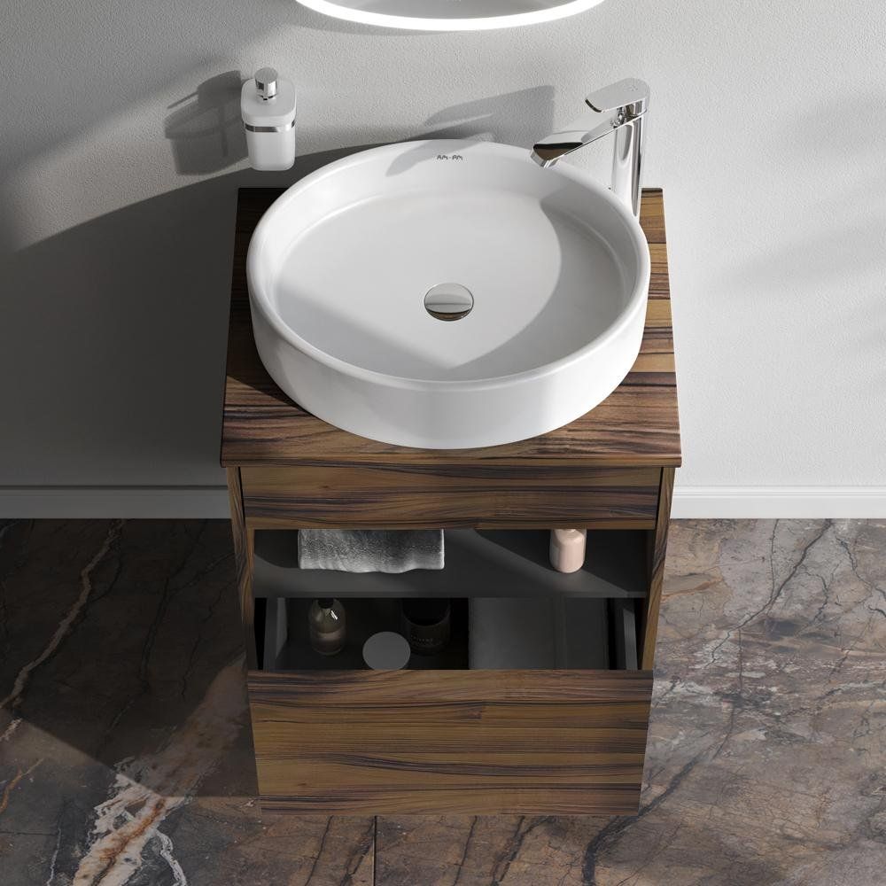 Обратите внимание, что для монтажа тумбы с раковиной следует учитывать параметры сифона и особенности конструкции изделия. Мебель поставляется в собранном виде, что облегчает процесс установки. Универсальный дизайн позволяет как напольный, так и подвесной монтаж, однако имейте в виду, что комплект ножек необходимо приобретать отдельно. Столешница не имеет готовых отверстий под смеситель, что открывает возможности для различных дизайнерских решений.