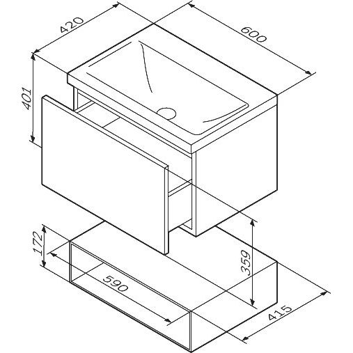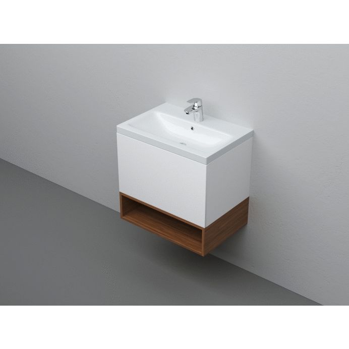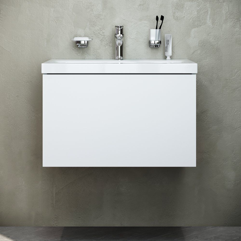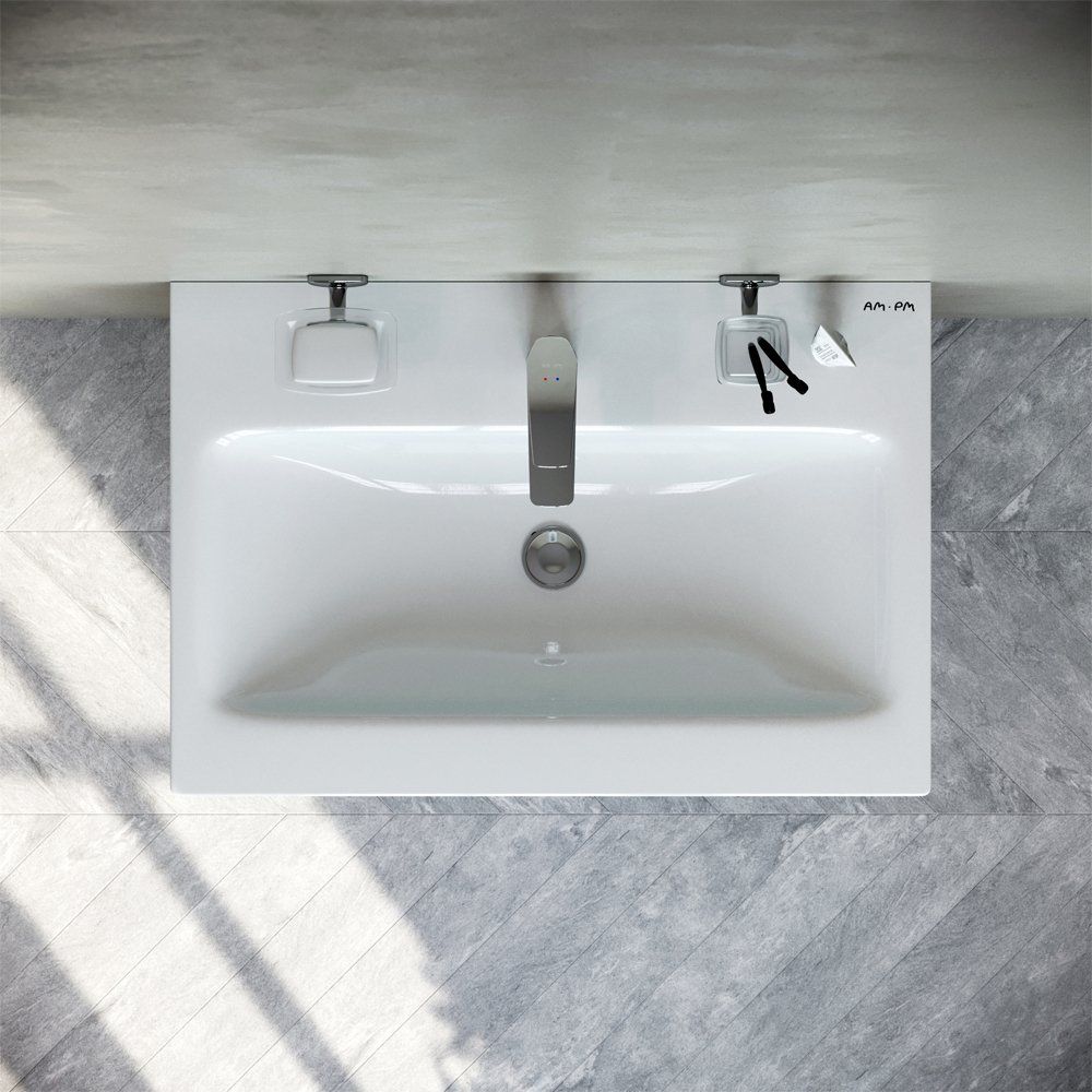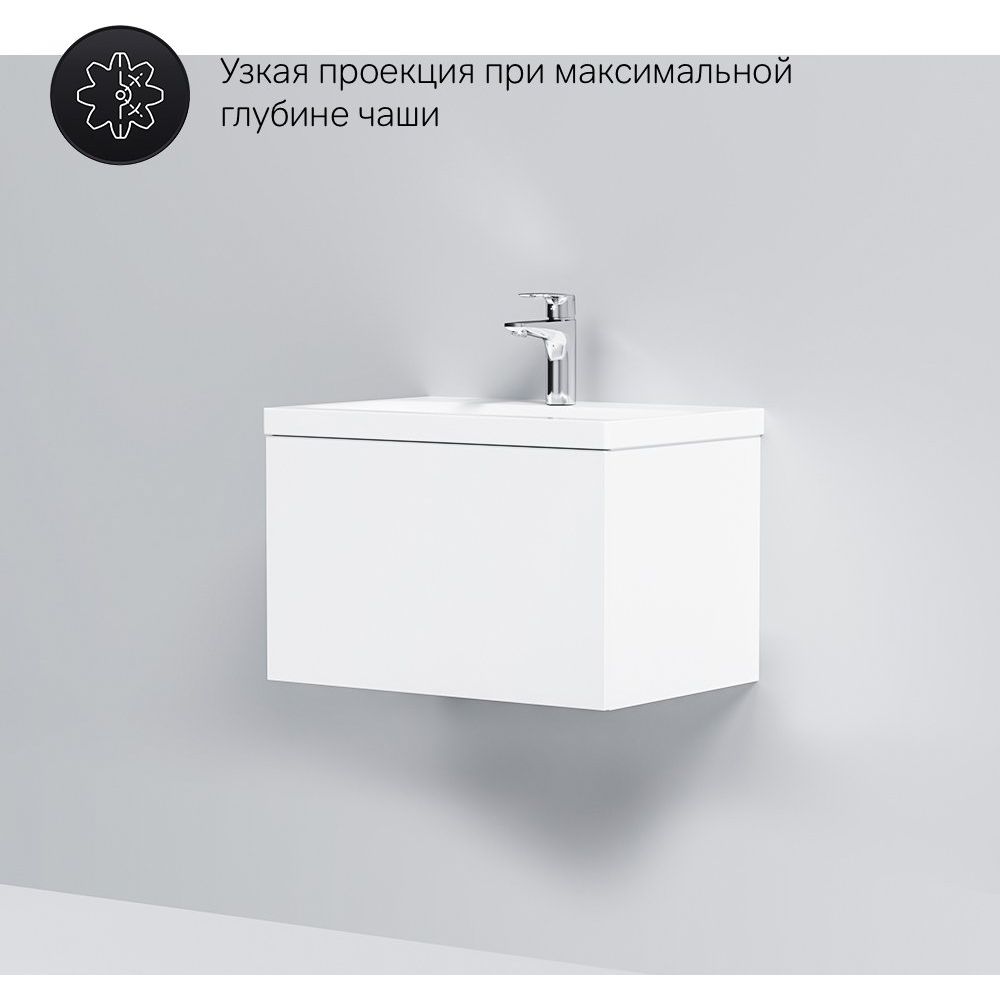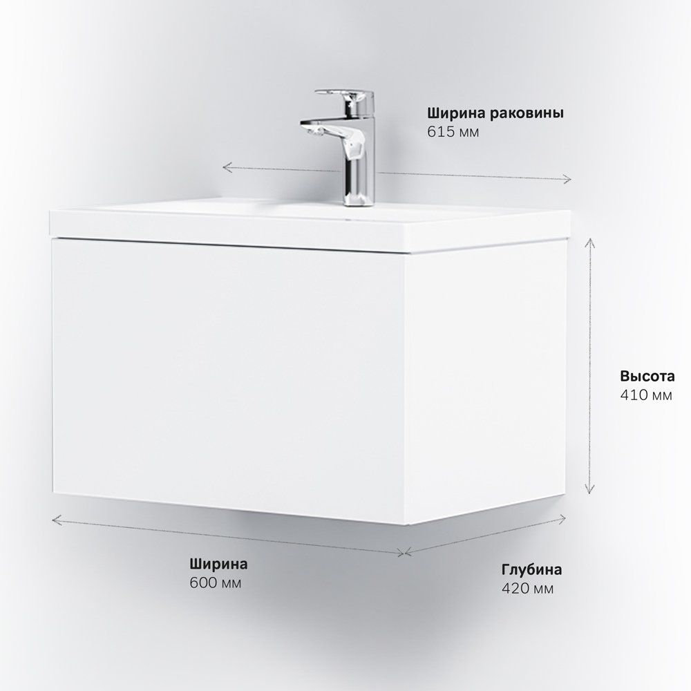 Тумба из коллекции AM.PM Gem имеет размеры 59x41,5x35,9 см и выполнена с подвесной конструкцией для легкой установки и уборки. Она оснащена ящиком с нажимным механизмом, позволяющим открывать его легким нажатием. Корпус и фасад выполнены из ДСП с эмалевым покрытием, добавляющим глянцевый шарм. Раковина имеет размеры 61x42,5 см и изготовлена из фарфора, подходящего для сифона диаметром 3.2 см. Комплект поставляется со сливом-переливом, но донный клапан необходимо докупить отдельно. На изделие распространяется гарантия в 3 года от производителя из Германии.