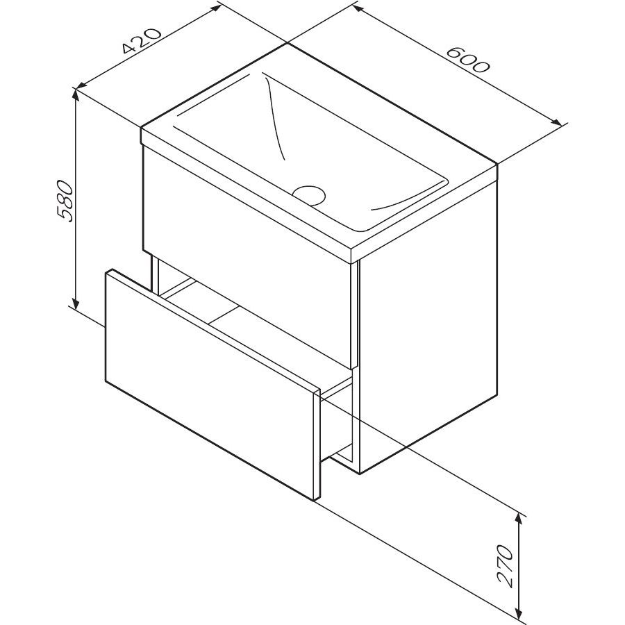 Основой комплекта является подвесная тумба AM.PM Gem, выполненная из ЛДСП с покрытием из эмали. Она обладает выдвижными ящиками с нажимным механизмом, что делает пользование максимально комфортным. Габариты тумбы составляют 60х42х58 см, что позволяет рационально использовать пространство ванной. Белоснежная мебельная раковина изготовлена из высококачественного фарфора, имеет встроенный слив-перелив и одно отверстие для смесителя. Ее размеры – 61х42.5 см. Обе части комплекта произведены в Германии и имеют 3 года гарантии.