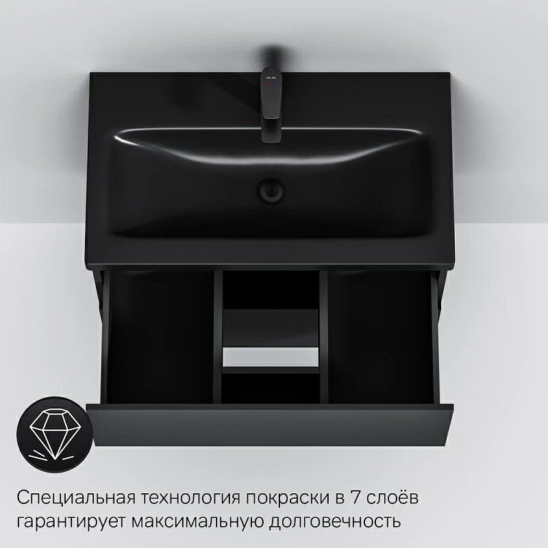 Комплект AM.PM Gem 75 — это истинное воплощение современного дизайна и практичности. Представляем элегантную черную матовую тумбу с двумя вместительными ящиками и идеально подходящую к ней фарфоровую раковину, которые привнесут в вашу ванную комнату стиль и комфорт. Конструкция подвесной тумбы не только экономит место, но и облегчает уборку.