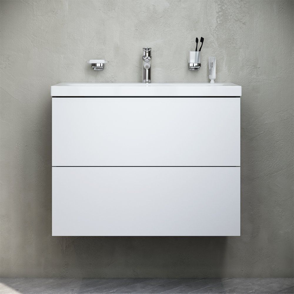 Тумба подвесная AM.PM Gem 75 оформлена в стильном белом глянце, имеет размеры 75x41,5x53,6 см. Качественный корпус и фасад выполнены из ДСП, покрытого эмалью, что гарантирует долговечность. Два просторных ящика легко открываются нажатием и закрываются без шума.