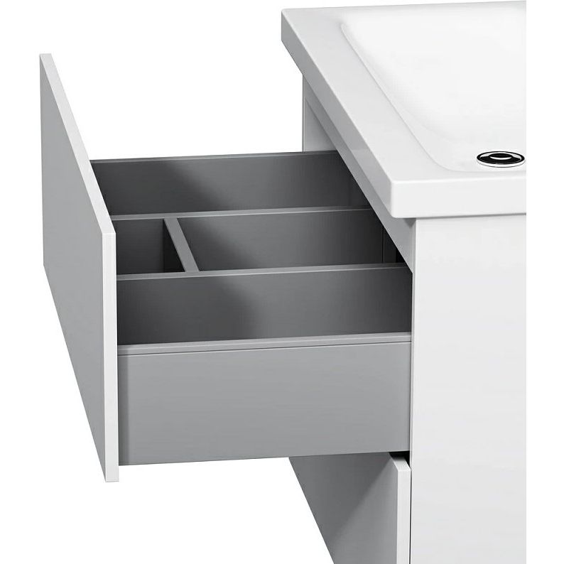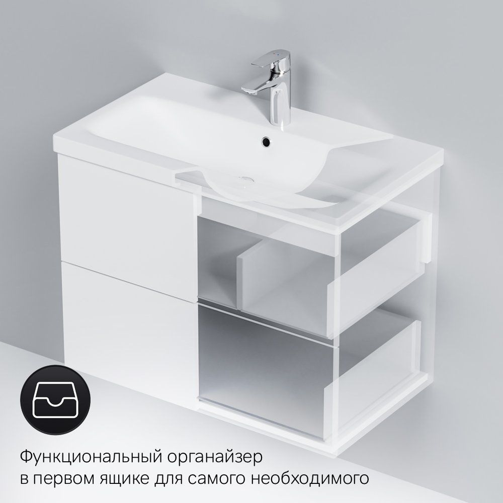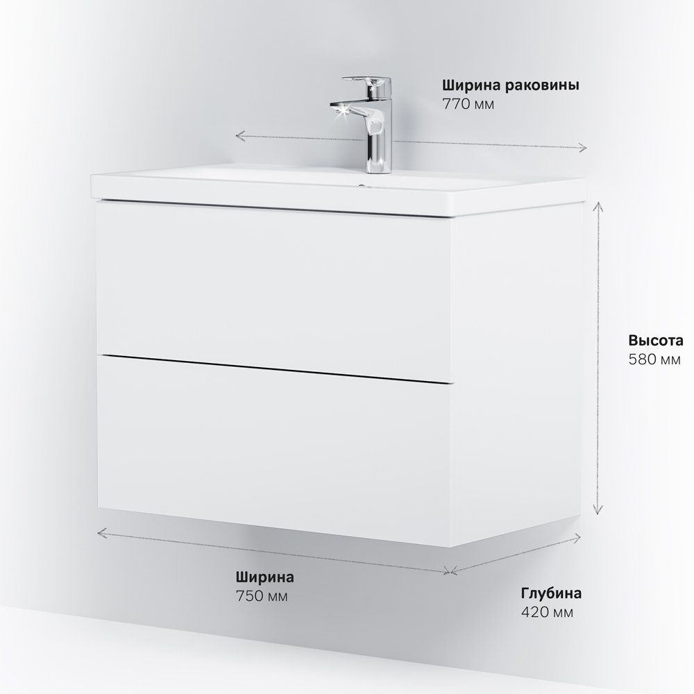Тумба поставляется в собранном виде, упрощая установку. Обратите внимание на выбор подходящего сифона в соответствии с спецификациями тумбы. Система подвешивания делает монтаж быстрым и удобным, однако правильный подбор сифона будет залогом оптимальной работы всей системы.