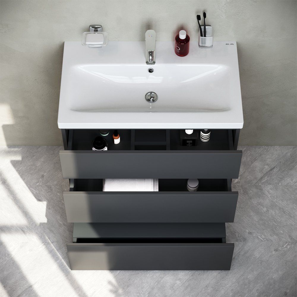 Тумба с раковиной AM.PM Gem S 75 — идеальное решение для ванной комнаты, где ценится стиль и функциональность. Эта модель воплощает минимализм со своим современным европейским дизайном от студии DanelonMeroni, сочетая в себе итальянскую изысканность и британскую строгость. Графитовый матовый цвет — тренд последних сезонов, который привнесет в интерьер утонченную роскошь. Прекрасное сочетание компактности и функциональности дает самая узкая раковина на рынке — всего 42 см в проекции.