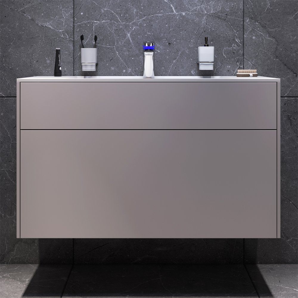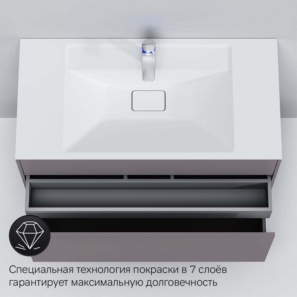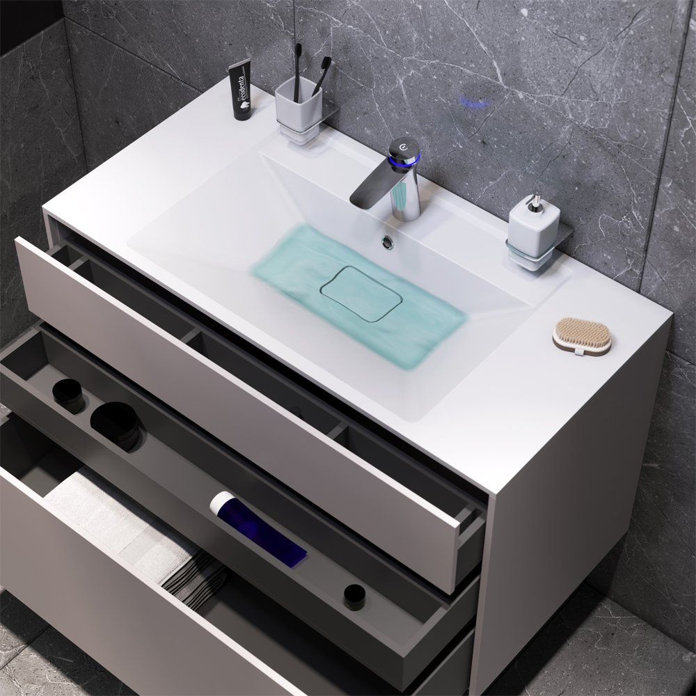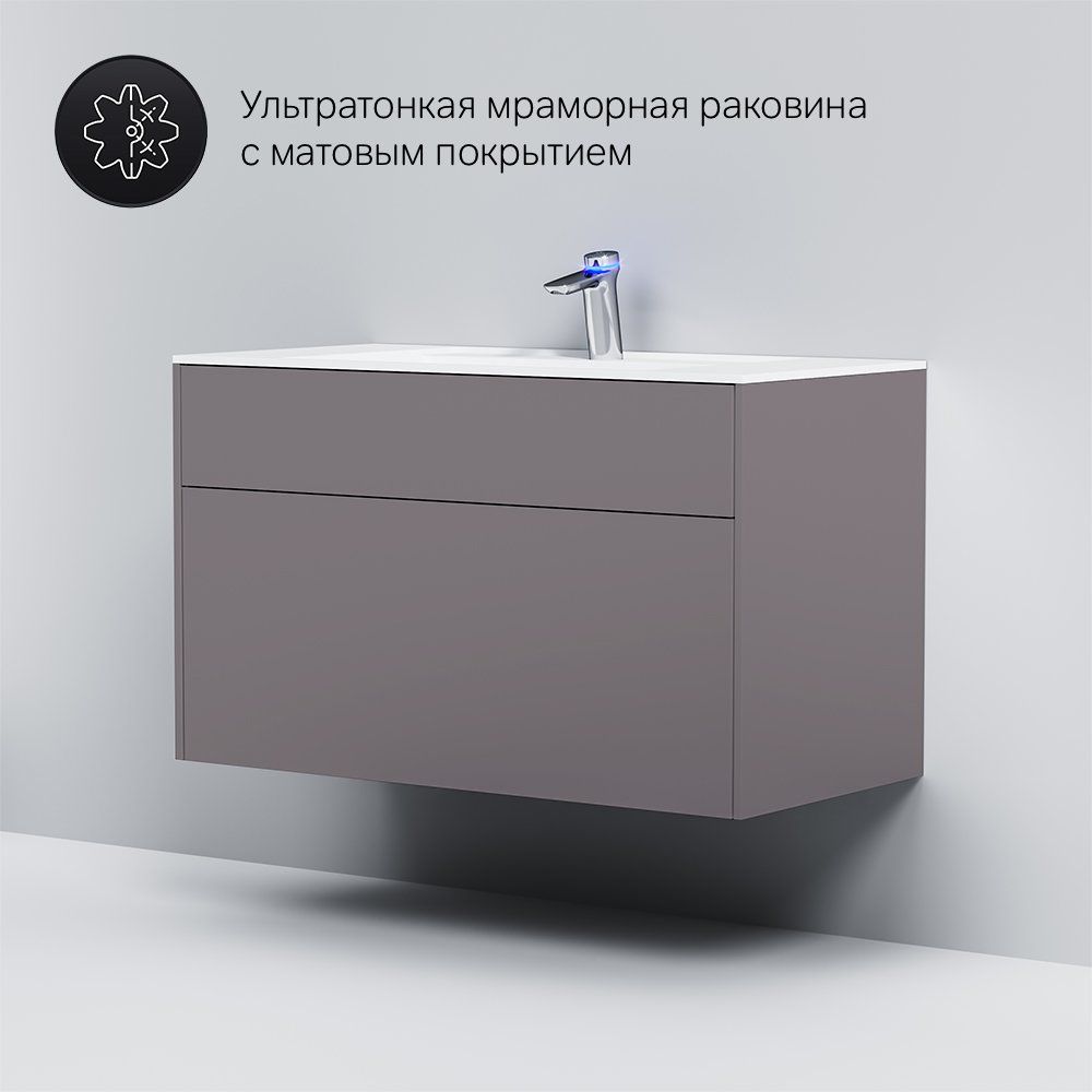 Элегантная тумба с раковиной AM.PM Inspire V2.0 в модном сером цвете — идеальный выбор для тех, кто стремится создать в ванной комнате атмосферу современного минимализма. Изделие притягивает внимание своими ультратонкими гранями, четкими формами и продуманным до мелочей дизайном. Верхний секретный ящик с органайзерами обеспечивает удобный доступ и позволяет находиться на комфортном расстоянии от зеркала и раковины. Ультратонкая раковина оснащена глубокой эргономичной чашей и декоративной пластиной для слива, что делает процесс ее использования максимально удобным и приятным.