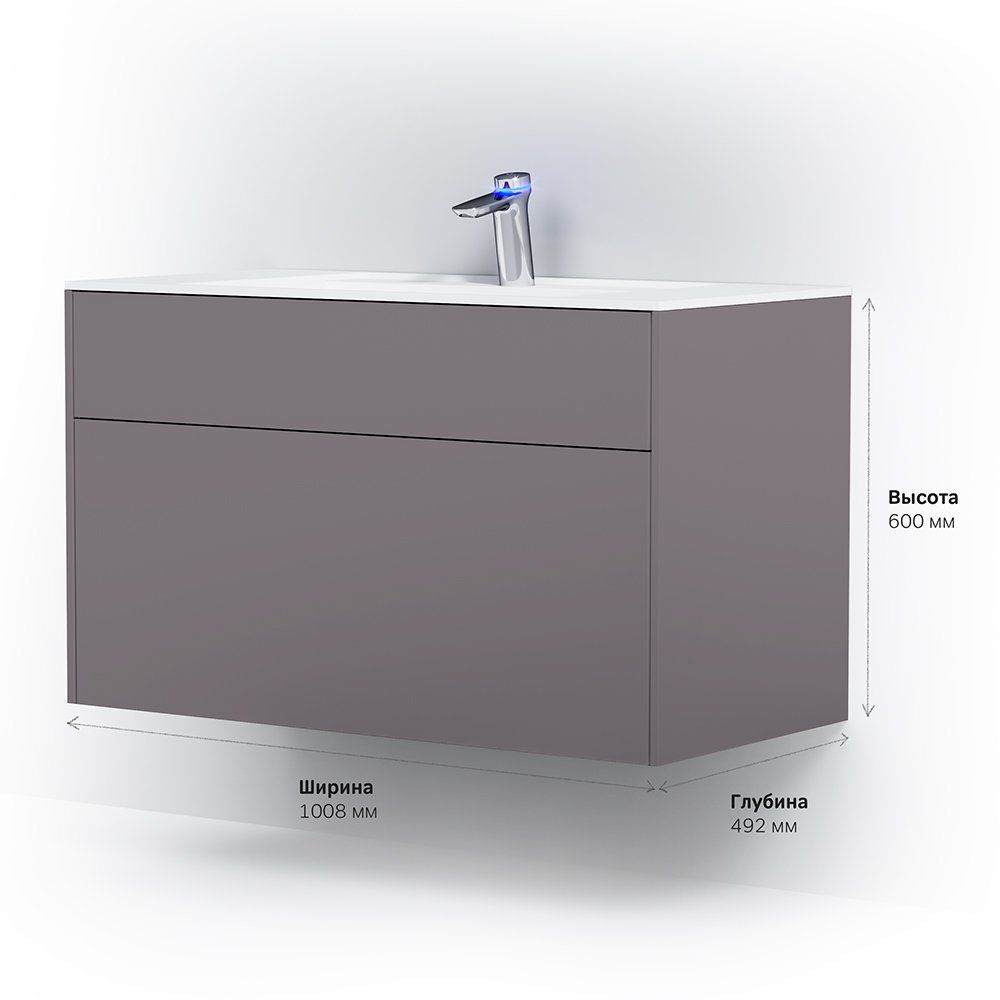 - Раковина: ширина 100,7 см, глубина 49,2 см, выполнена из искусственного мрамора.