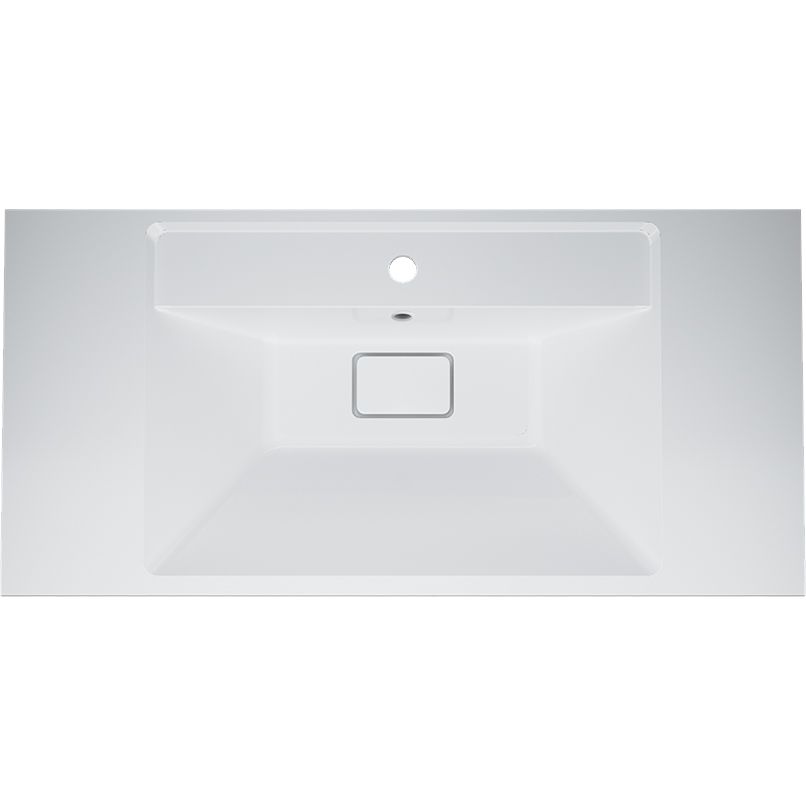 Раковина в комплекте выполнена из искусственного мрамора и имеет размеры 100,7x49,2 см. Она оборудована для сифона диаметром 3.2 см и имеет встроенную систему слив-перелив. В комплекте идет донный клапан и арматура для слива-перелива. Одно готовое отверстие под смеситель придаст функциональности пользователю.