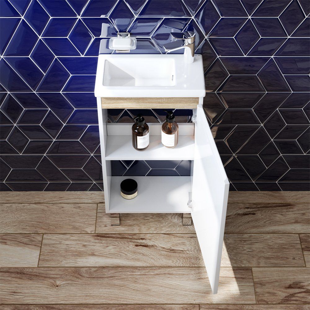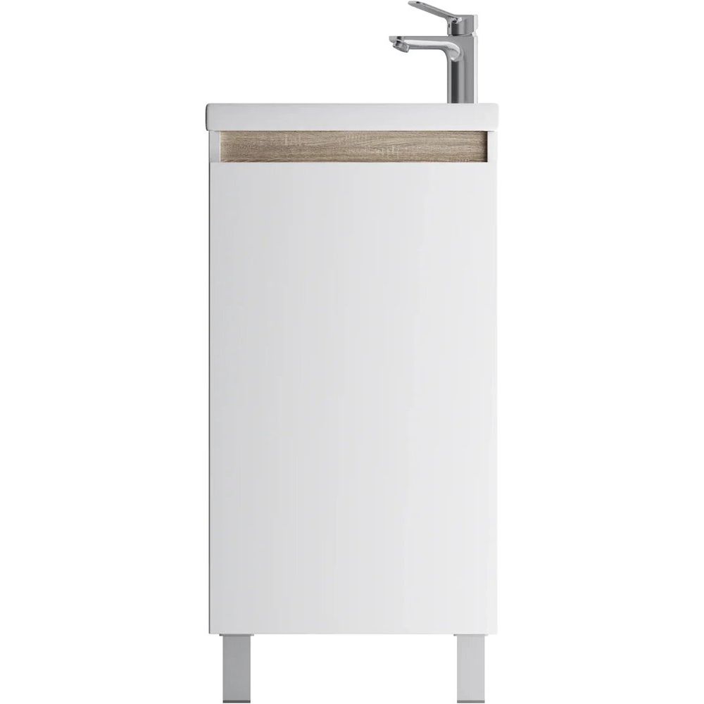 Преобразите ванную комнату с элегантной тумбой с раковиной AM.PM X-Joy 45. Это произведение искусства от дизайн-бюро Danelon Meroni сочетает в себе британскую практичность и итальянский шарм. Белоснежные глянцевые фасады и акценты из светлого дерева создают атмосферу уюта и стиля. Встроенная керамическая раковина не только радует глаз, но и снабжена бортиком, предотвращающим попадание воды за мебель. Долговечные полиакриловые эмали, разработанные с использованием инновационной технологии окрашивания в 7 слоев, обещают сохранить насыщенный цвет на протяжении десятилетий. Боковины из влагостойкой ЛДСП гарантируют длительный срок службы вашей мебели.