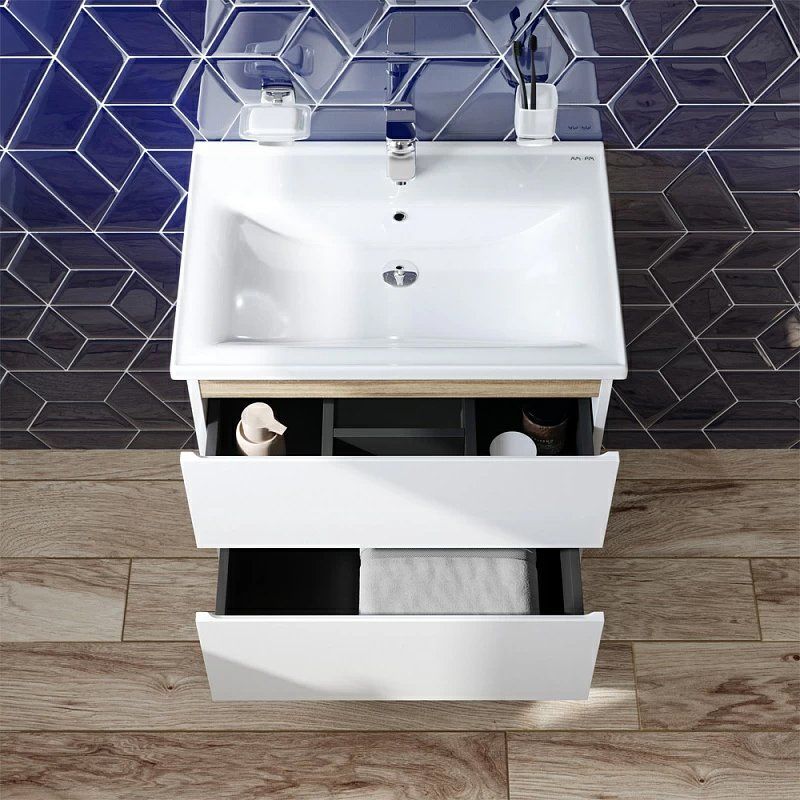 Откройте для себя эстетическое удовольствие и функциональность с подвесной тумбой с раковиной AM.PM X-Joy 65 в белом глянце. Спроектированная знаменитыми дизайн-бюро Danelon Meroni из Великобритании и Италии, эта тумба сочетает в себе глянцевые белые фасады и отделку под светлое дерево. Внутреннее пространство каждого ящика отделано современной антрацитовой расцветкой с противоскользящим покрытием, что обеспечивает порядок и удобство в использовании. Кроме того, встроенная керамическая раковина ослепительно белого цвета предлагает дополнительный бортик, защищающий мебель от пролива воды. Экологически чистые полиакриловые эмали создаются по технологии, превосходящей автоэмали ведущих немецких брендов, что гарантирует насыщенный цвет и долгую службу изделия. Влагостойкие боковины из ЛДСП увеличивают срок эксплуатации этой роскошной мебели для ванной до максимума.