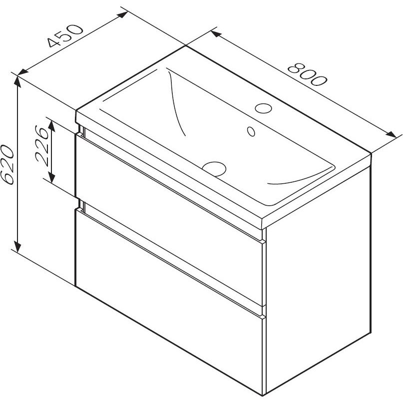 Раковина в комплекте выполнена из глянцевого белого фарфора с размерами 80x45 см. Она оснащена встроенным сливом-переливом, имеет одно отверстие для смесителя, и требует донный клапан, покупаемый отдельно. Для сифона предусмотрен диаметр в 3.2 см. Гарантия на раковину — впечатляющие 25 лет.