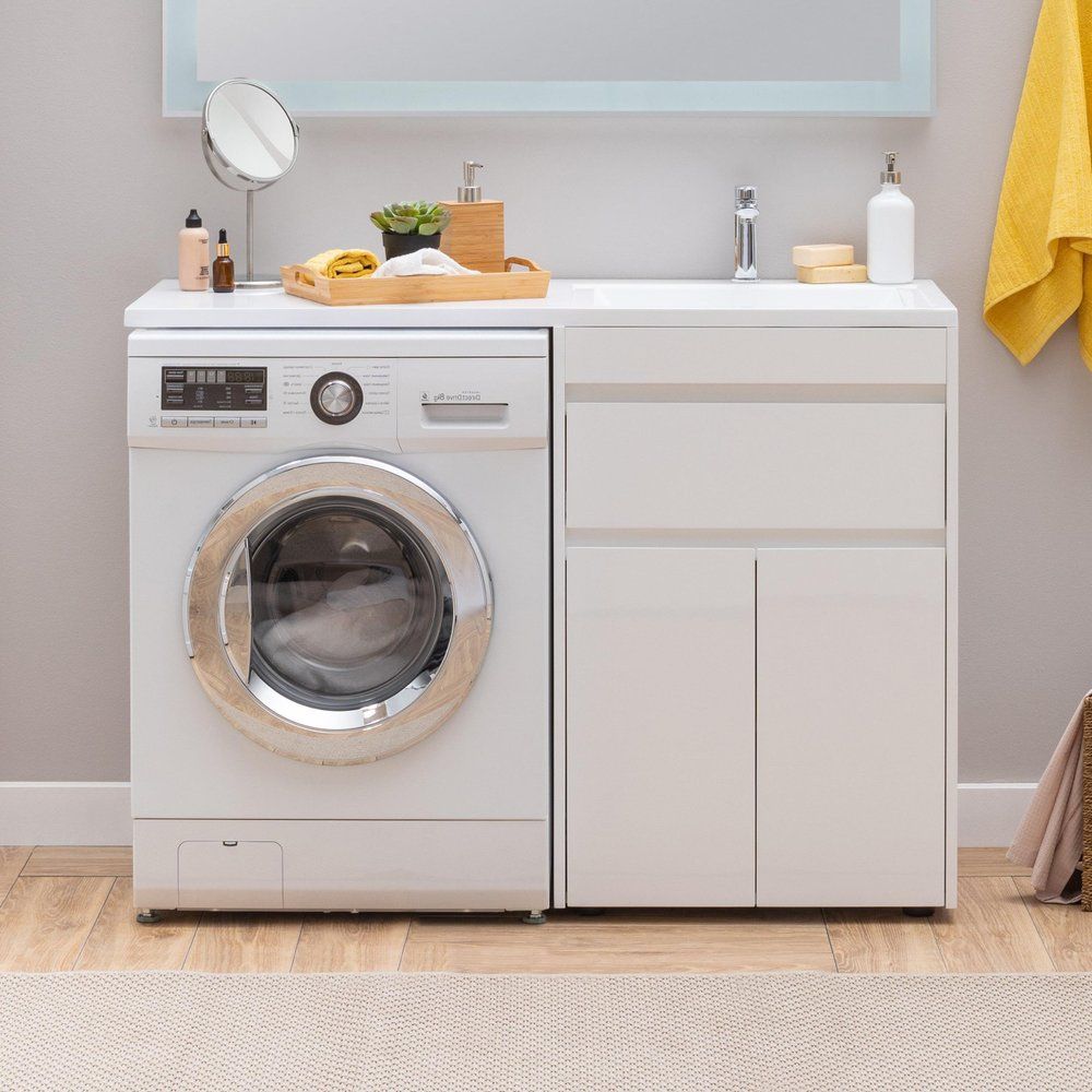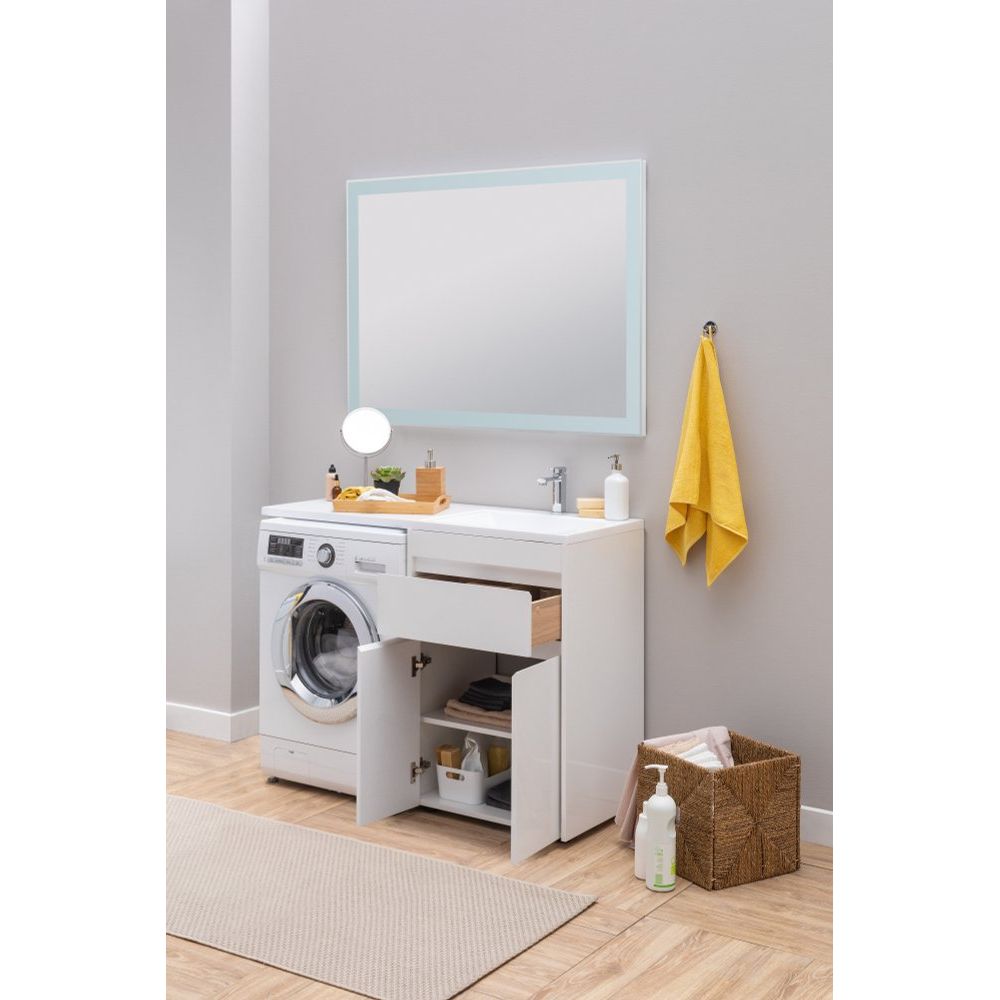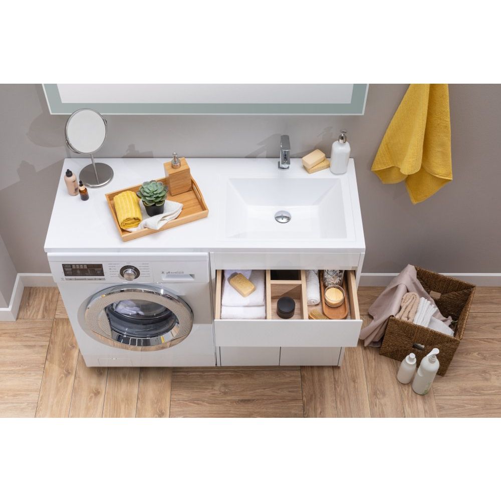 - Компактные размеры и современный дизайн гармонично подходят для любых санузлов, в том числе для установки над стиральной машиной.