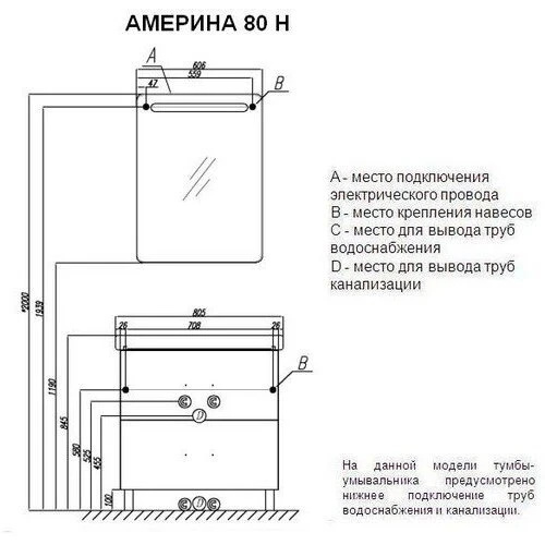 АМЕРИНА Н - модель из коллекции АМЕРИНА, предусматривающая установку на ножки и имеет 2 внешних ящика, а за верхним скрывается еще один – скрытый встроенный ящик. Внешние ящики установлены на направляющие нижнего крепежа, обеспечивающие жесткое и надежное крепление и плавный ход. В направляющие встроены доводчики. Дополнительно организовано нижнее подключение труб водоснабжения и канализации. Эти тумбы обладают всеми преимуществами тумб АМЕРИНА: