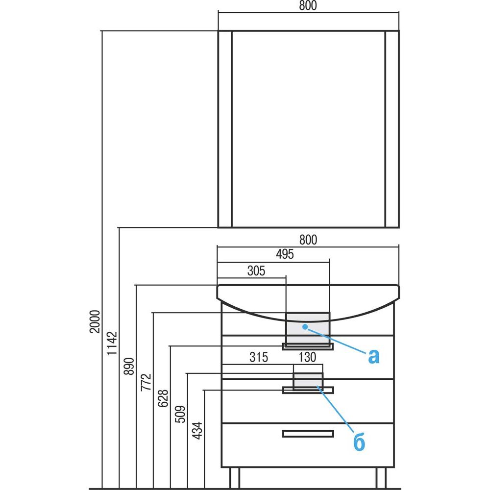 - Регулируемые ножки позволяют установить тумбу ровно, даже на неровном полу.