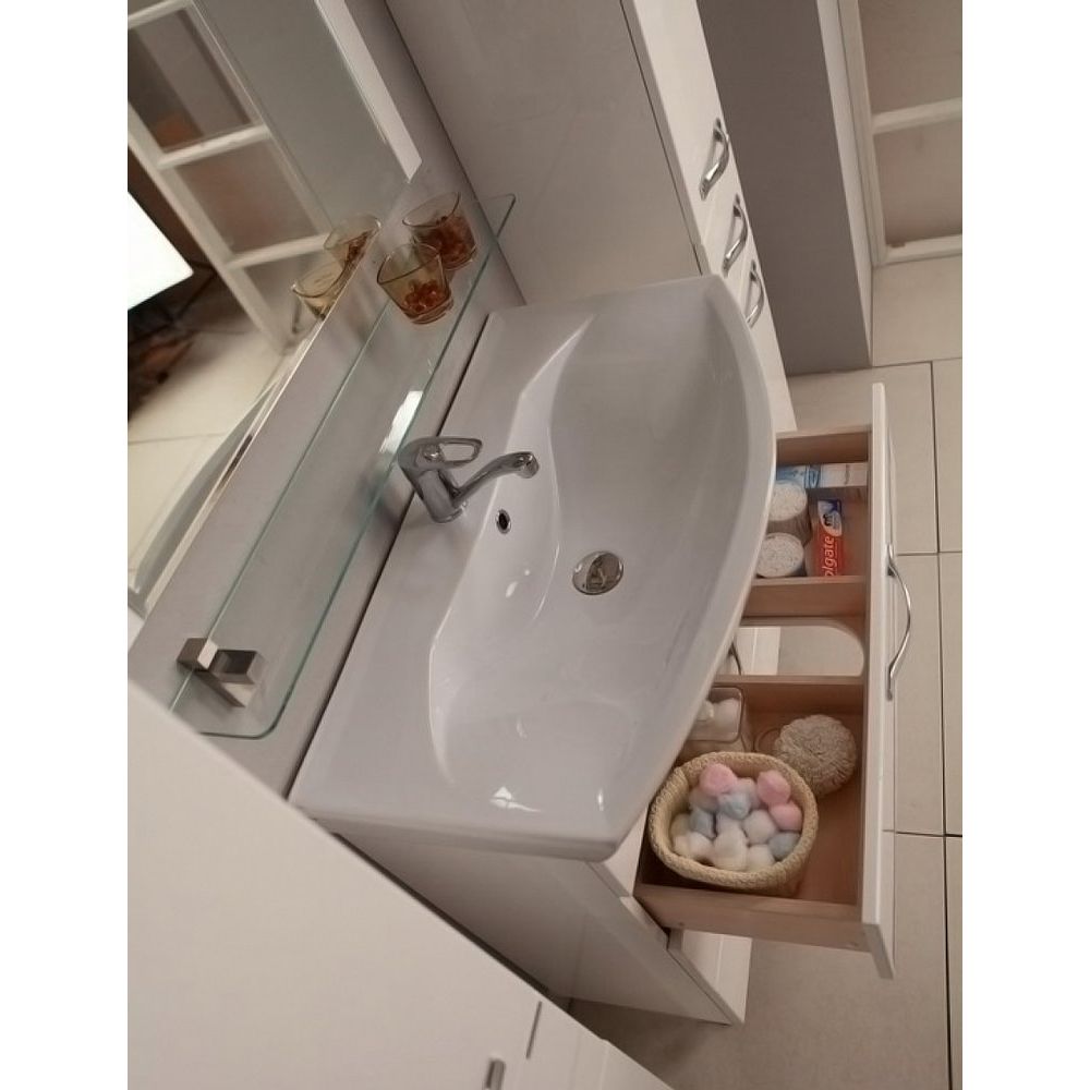Тумба с раковиной AQUATON Ария Н 80 - идеальное решение для современного интерьера вашей ванной комнаты. Продукция бренда AQUATON известна качеством и стильным дизайном, что делает её востребованной среди покупателей, стремящихся к комфорту и функциональности. Эта белая тумба с глянцевым покрытием не только гармонично впишется в любой интерьер, но и обеспечит удобство хранения благодаря продуманной системе ящиков, в одном из которых есть разделители для мелочей.