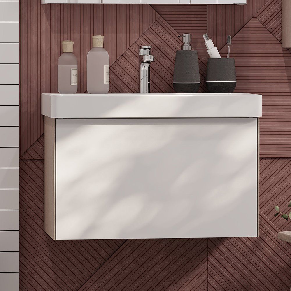 Тумба с раковиной AQUATON Асти 70 — это сочетание элегантности и практичности для вашей ванной комнаты. Белый глянцевый фасад в дуэте с ясенем шимо добавляет интерьеру утонченности и легкости, идеально вписываясь в современные дизайнерские концепции. Эта модель не только функциональна, но и станет украшением вашей ванной комнаты, подчёркивая ее уникальный стиль.