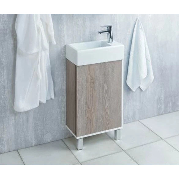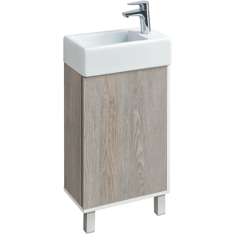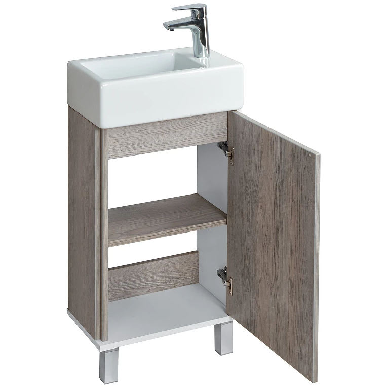 Стильная и элегантная тумба Эмма от AQUATON отлично подходит для ванных комнат и санузлов с компактными габаритами. Передний фасад, левая боковая стенка, а также регулируемая по высоте внутренняя полка выполнены из влагостойкой ЛДСП в цвете дуб наварра. Правая боковая стенка из влагостойкой ЛДСП покрашена в белый глянец. Полное отсутствие лицевой фурнитуры поддерживает минималистичный дизайн модели. Для комплектации тумбы идеально подходит прямоугольная раковина Santek Эрис 46.