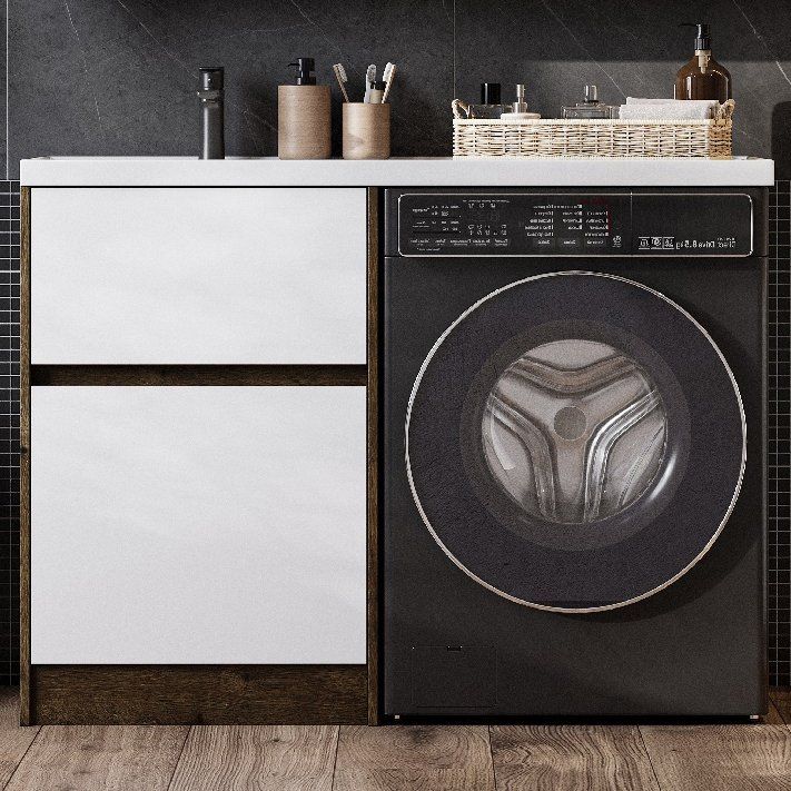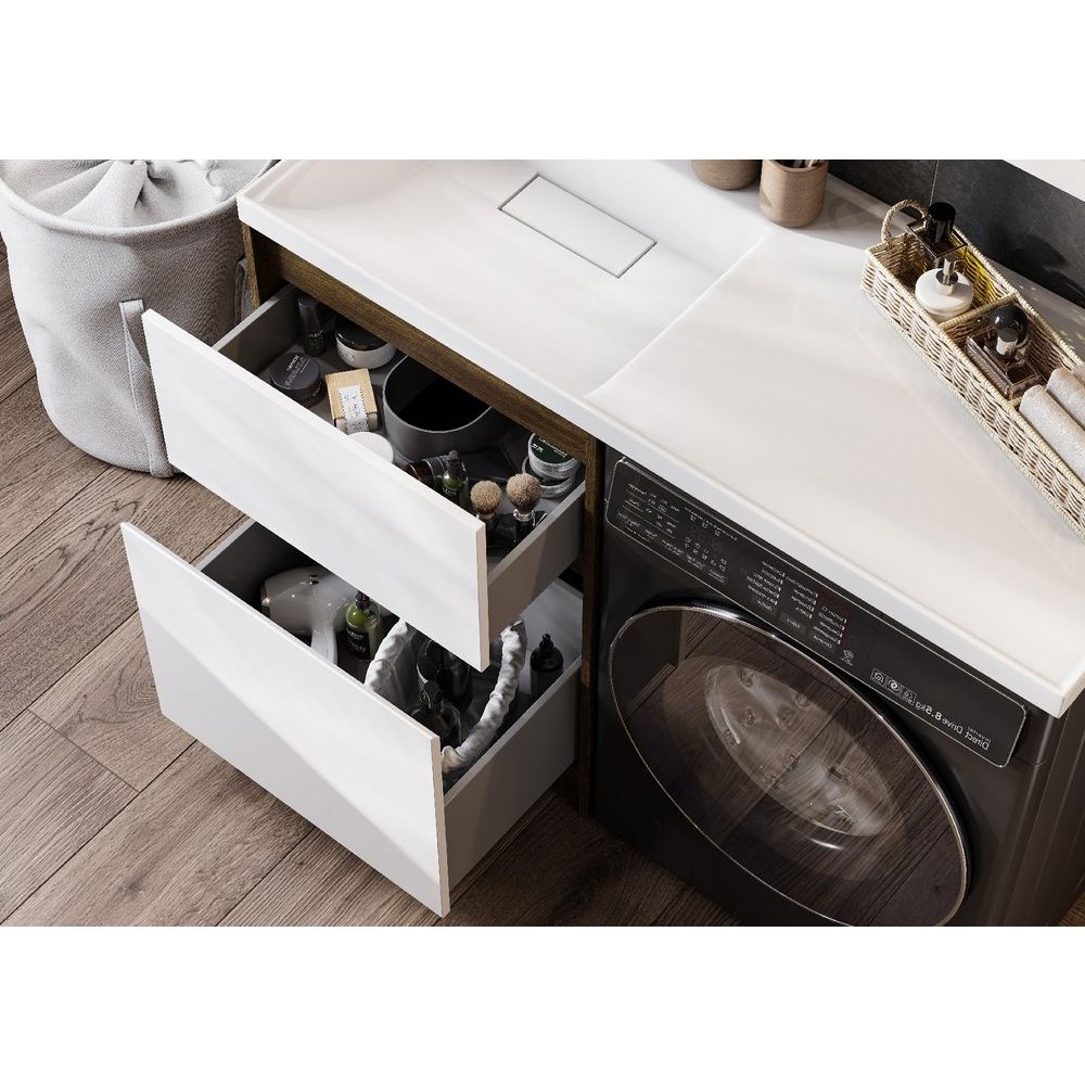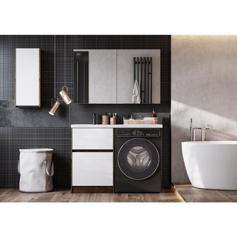 - Габариты тумбы: 57x49,6x86 см, подходит для установки над стиральной машиной.