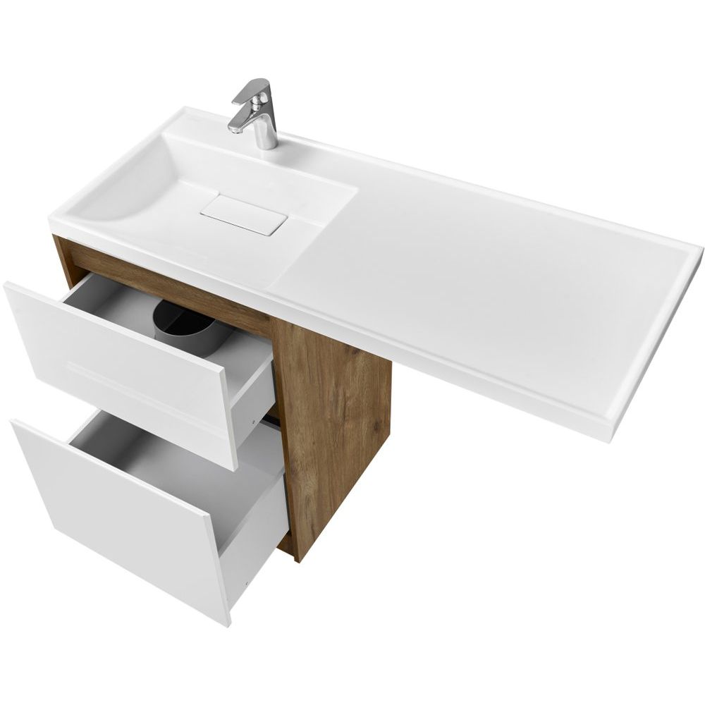 Тумба с раковиной AQUATON Лондри 60 L — это гармония стиля и функциональности для вашей ванной комнаты. Сочетая природный дуб рустикальный с белоснежным фасадом, этот комплект станет идеальным решением для создания современного и уютного интерьера. Изготовленная из высококачественного ЛДСП и покрытая ламинатом, тумба обещает долгий срок службы и удобство в эксплуатации.