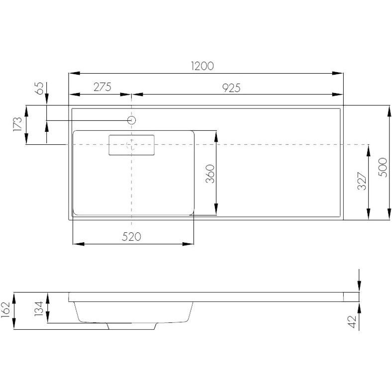 - Материал раковины: искусственный мрамор, предусмотрено одно отверстие под смеситель.