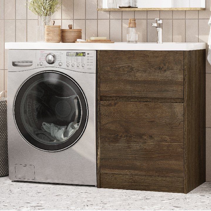 - Эргономичность — мебель идеально подходит для установки над стиральной машиной, экономя место.