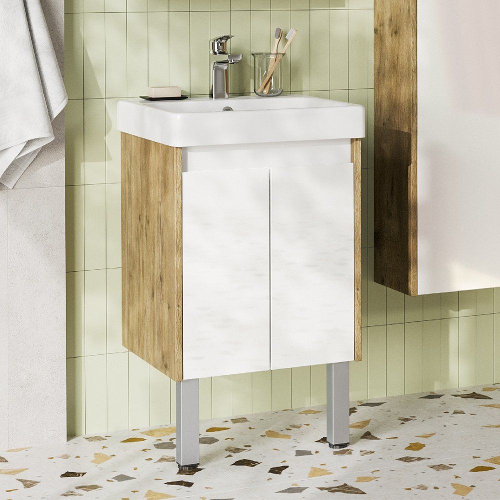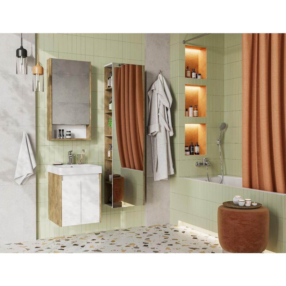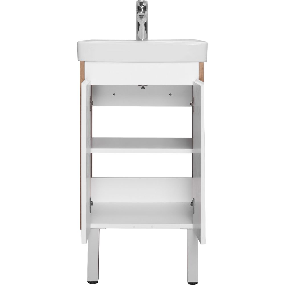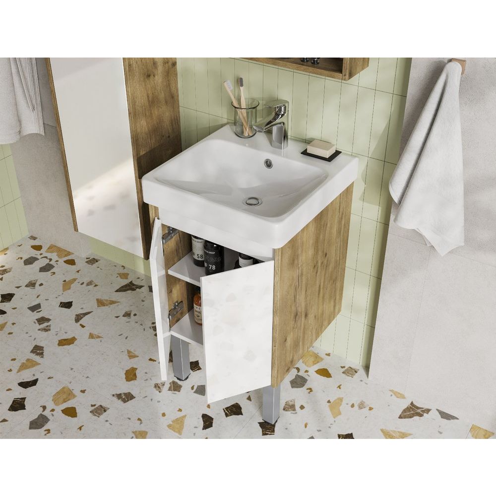 Ваша ванная комната станет стильной и функциональной с тумбой с раковиной AQUATON Сканди 45. Элегантное сочетание белого глянцевого лака и дуба рустикального создают атмосферу минимализма и уюта, идеально вписываясь в скандинавский стиль. Компактный дизайн делает эту модель идеальной для небольших пространств, не уступая в функциональности. Она предлагает достаточно места для хранения, организуя Ваши вещи так, чтобы все самое нужное было под рукой.