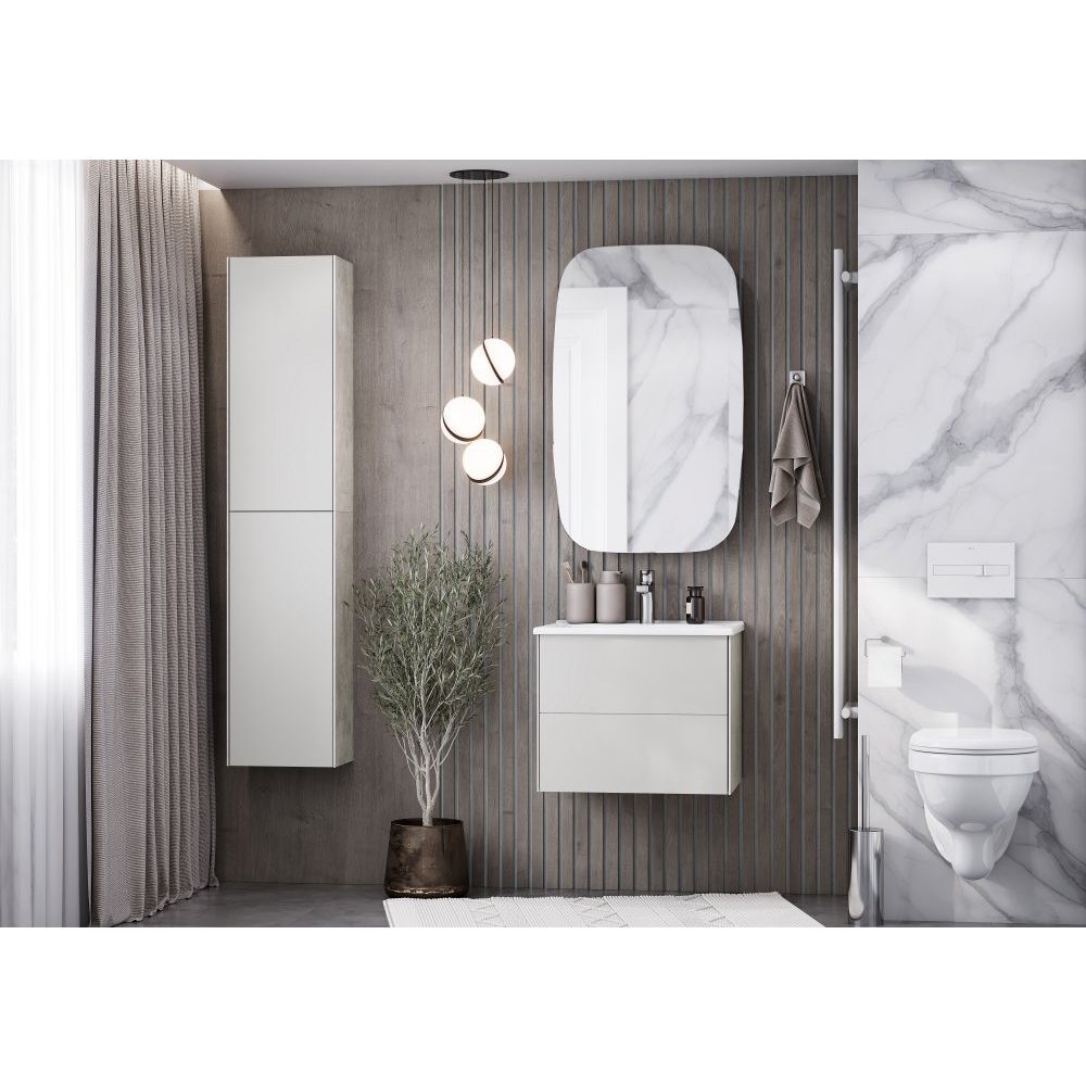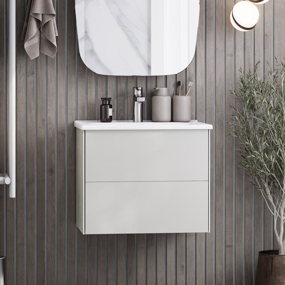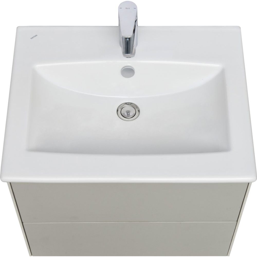 Тумба в комплекте оснащена подвесной конструкцией, что упрощает уборку и сохраняет стильный вид вашего интерьера. Ее габариты составляют 58,8 см в ширину, 45,5 см в глубину и 47,2 см в высоту. Корпус выполнен из ламинированного ЛДСП, тогда как фасад изготовлен из МДФ с прочной пленкой покрытия. Внутри предусмотрены ящики с нажимным механизмом открывания, однако механизм доводчика не установлен. Раковина AQUATON Элина 60, входящая в комплект, изготовлена из фарфора и подходит для сифона диаметром 3.2 см, оснащена встроенным сливом-переливом и имеет одно готовое отверстие под смеситель. Донный клапан необходимо приобрести отдельно.