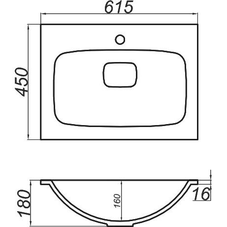 Мебельная раковина из прочного искусственного мрамора имеет размеры 61,5x45 см. Слив оборудован декоративной накладкой, в комплекте предусмотрено отверстие под смеситель с диаметром отверстия для сифона 3.2 см. Раковина не поддерживает установку донного клапана.
