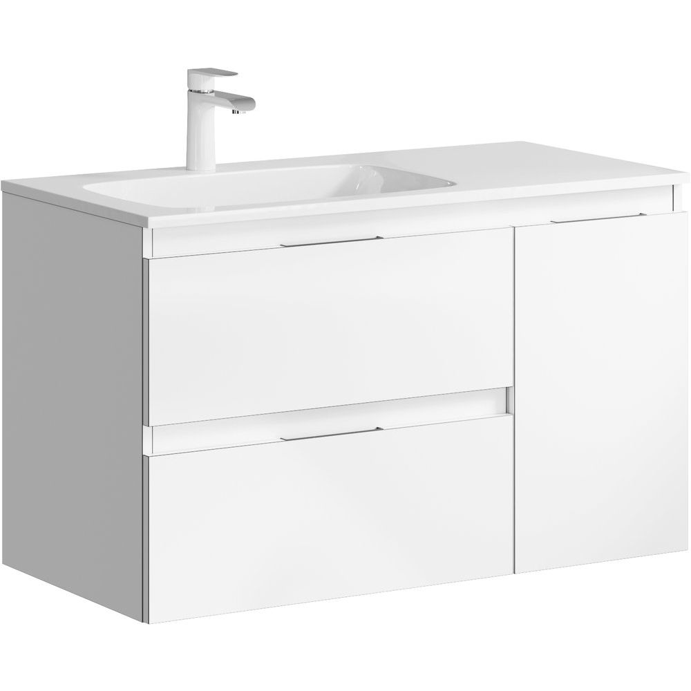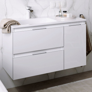- Мебельная раковина Malaga 90 L: Выполнена из искусственного мрамора, габариты 91,8x45 см. Не предусматривает установку донного клапана, но оснащена декоративной накладкой на слив и одним отверстием под смеситель.