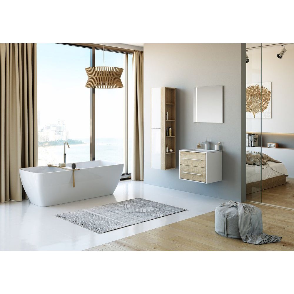 Тумба с раковиной Aqwella 5 stars Miami 60 станет отличным дополнением вашей ванной комнаты, благодаря стильному дизайну и прочным материалам. Минималистичная эстетика тумбы контрастирует между оттенками «дуб сонома» и «белый глянец», что придаёт ей особую изысканность. Изготовленная из влагостойкой ДСП, её поверхность защищена от воздействия высоких температур, обеспечивая долговечность и надежность. В комплект включена мраморная раковина, устойчивая к царапинам и повреждениям, с глянцевым блеском, который легко поддерживать в идеальном состоянии.