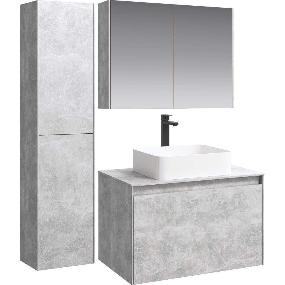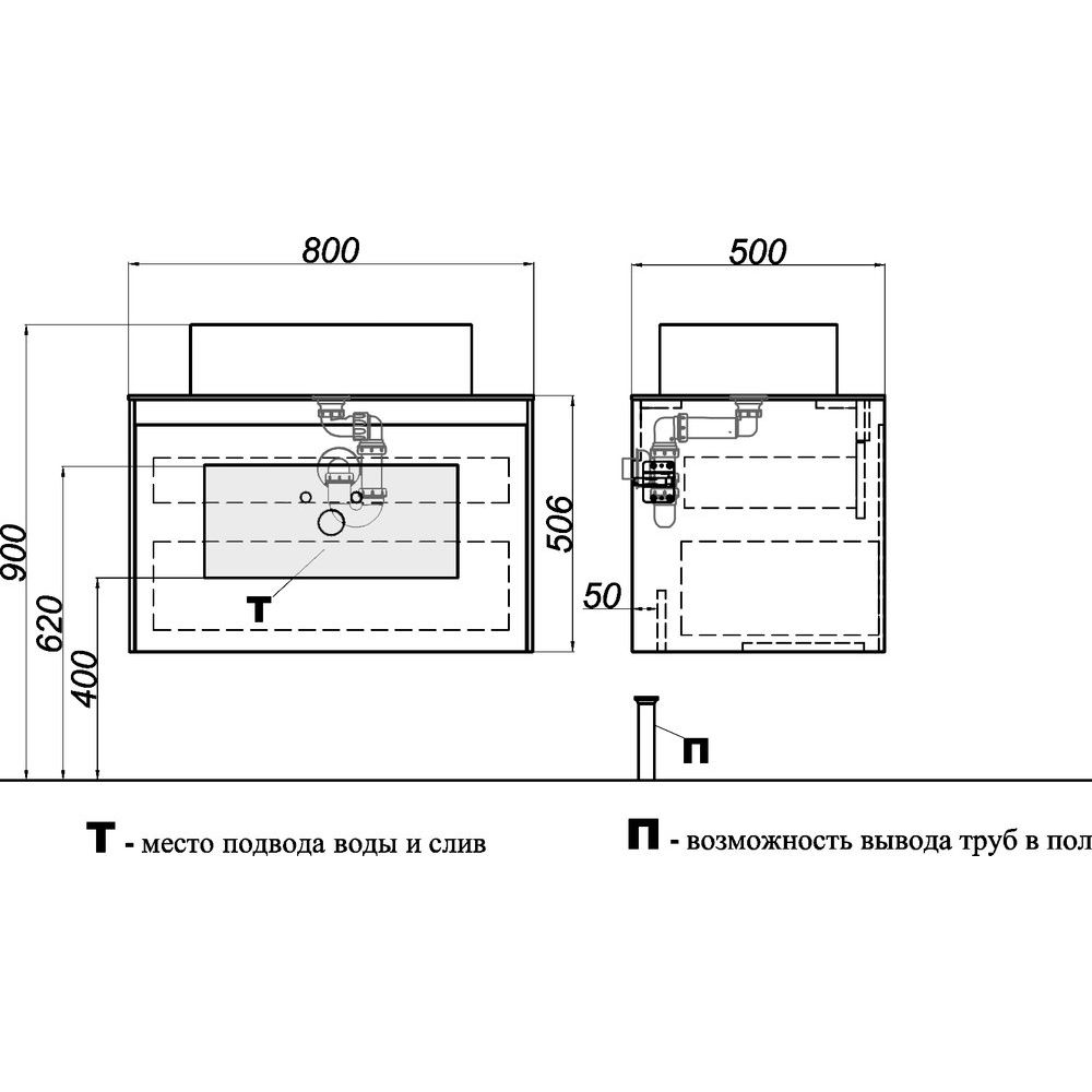 Тумба для комплекта имеет размеры 80x50x50,6 см и выполнена из высококачественного МДФ с ламинатным покрытием. Фасад также изготовлен из МДФ, что обеспечивает долговечность и красивый внешний вид. Оснащена механизмом плавного закрывания с доводчиком, подходит для раковин-чаш. В комплекте предусмотрен сифон, гарантия на изделие составляет 2 года. Производство — Россия.