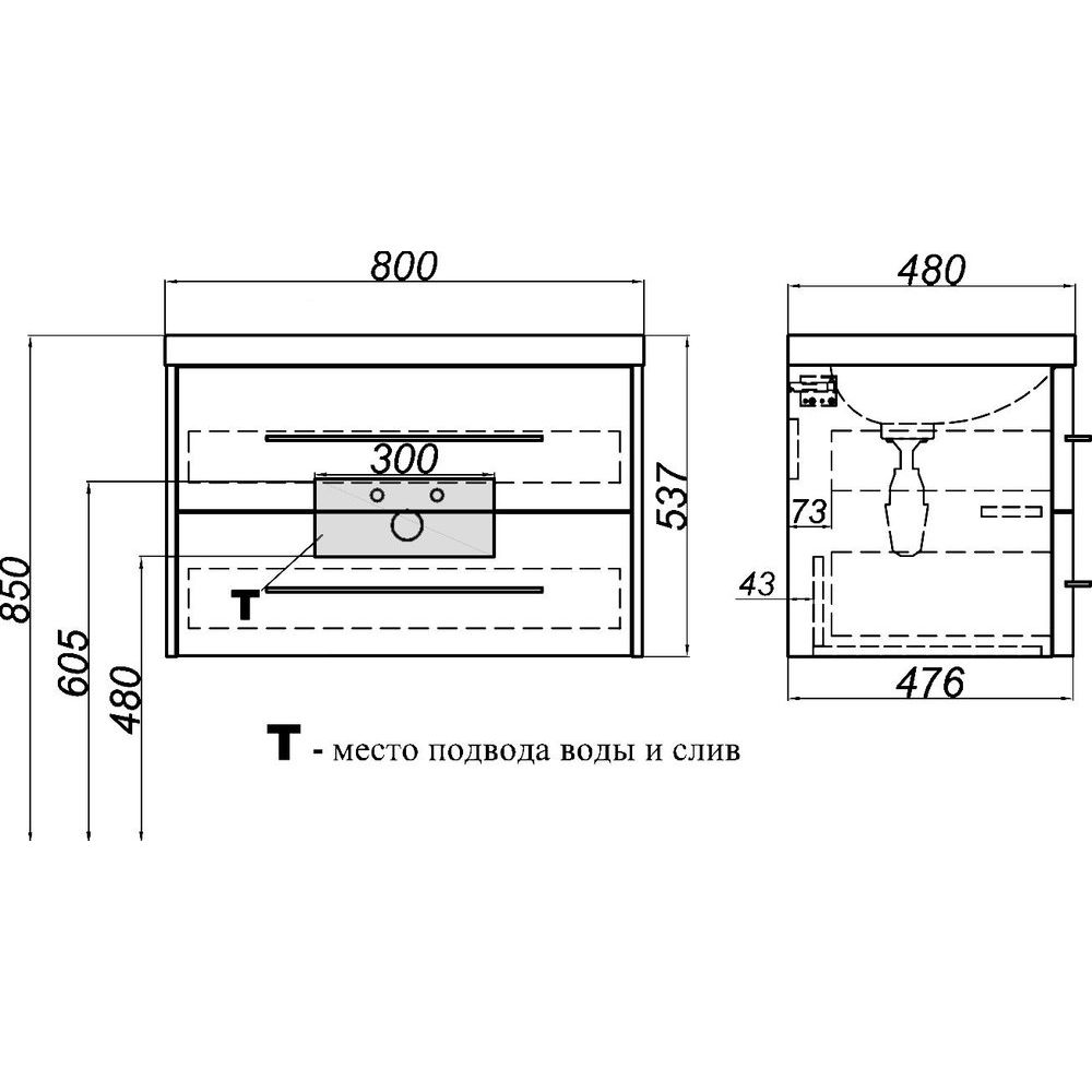 Раковина для тумбы представлена размером 80x48 см и выполнена из искусственного мрамора. Имеет предусмотренное отверстие для смесителя, подходит для сифона диаметром 3.2 см. На изделие также действует гарантия сроком 2 года.