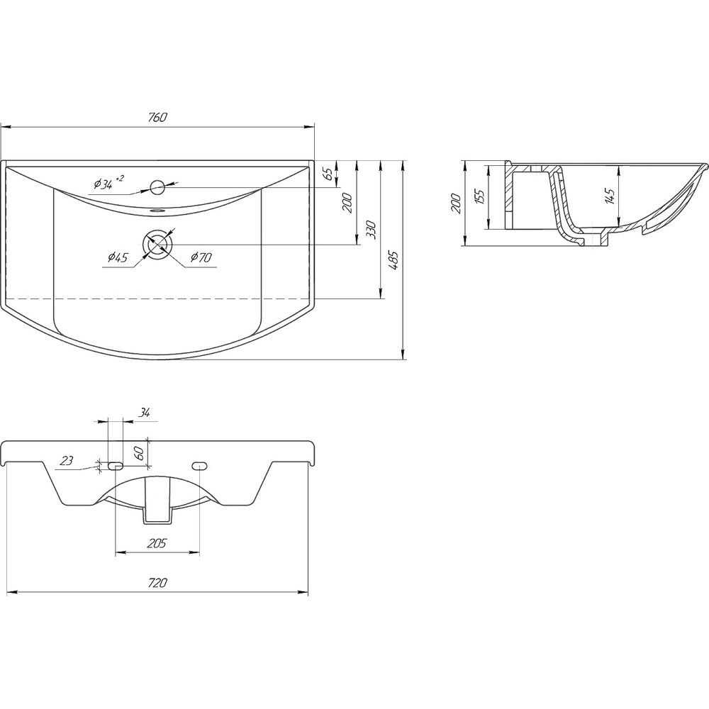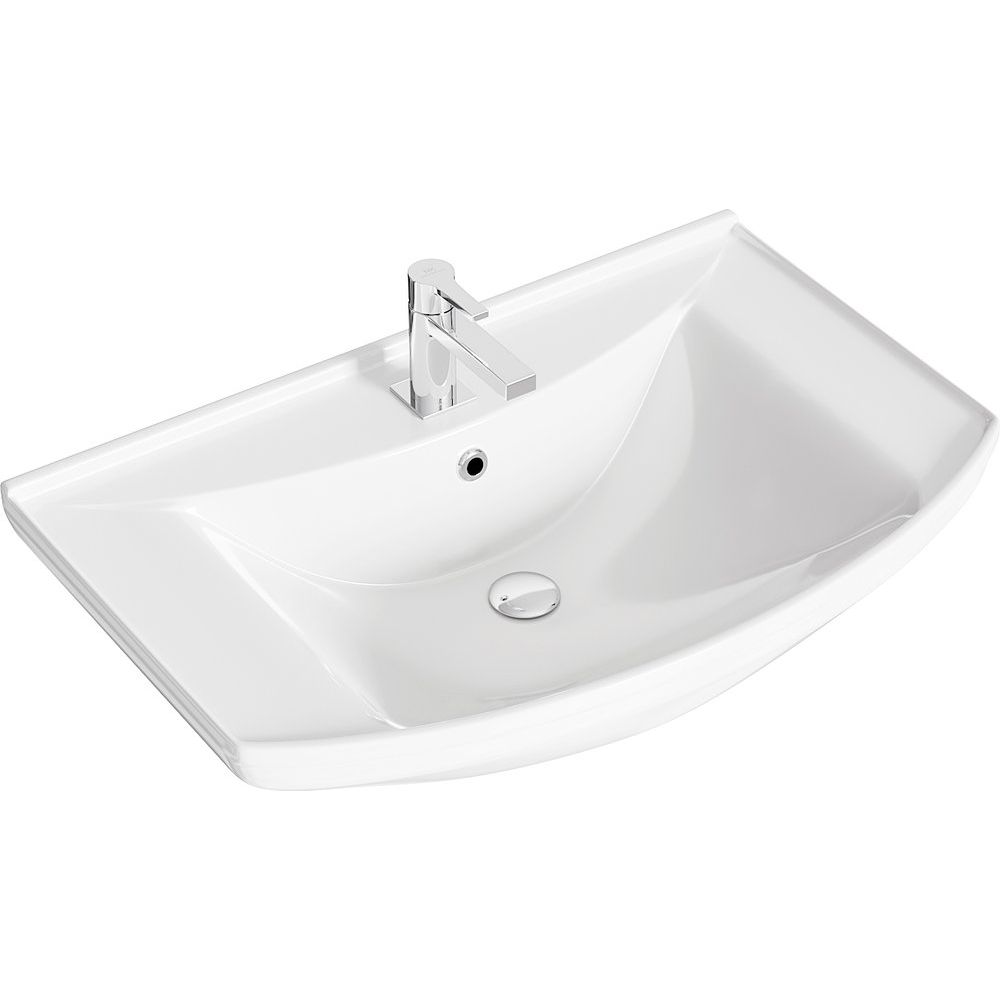 Раковина "Кировит Стиль 75" (76x48,5 см) изготовлена из фарфора с готовым отверстием под смеситель и встроенным слив-переливом. Для установки требуется отдельная покупка донного клапана и подбор сифона с учётом диаметра 3.2 см. Гарантия на раковину — 10 лет.