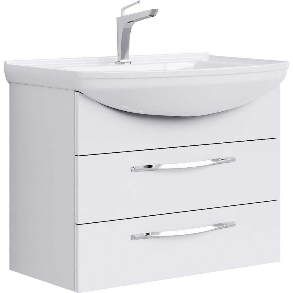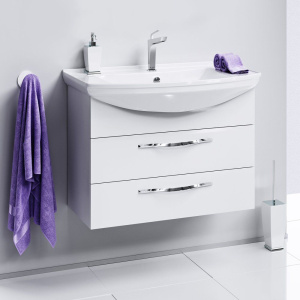 Тумба с раковиной Aqwella Allegro 75 — это идеальное сочетание современного стиля и высокого качества, которое станет украшением вашей ванной комнаты. Белоснежная подвесная конструкция обеспечивает не только стильный вид, но и практичное использование пространства. В комплект входит элегантная фаянсовая раковина от российского завода Kirovit, уникальная форма которой предотвращает выплескивание воды и обеспечивает удобство в эксплуатации. Продуманная внутренняя организация представлена двумя выдвижными ящиками с доводчиками от известной фирмы Blum, гарантируя мягкое и тихое закрытие. Фасадные части изготовлены из МДФ и покрыты пятислойной белой глянцевой эмалью, что придаёт изделию долговечности и устойчивости к неблагоприятным условиям.