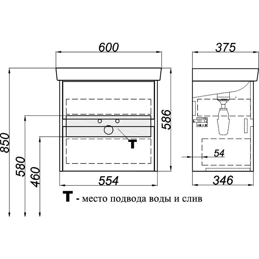 Обратите внимание: в комплект поставки входит другая раковина, нежели та, что изображена на фотографии. Мебель поставляется в собранном виде, что существенно упрощает её установку. При выборе сифона необходимо учитывать особенности конструкции тумбы с раковиной, чтобы подобрать его индивидуально и избежать несовместимости.