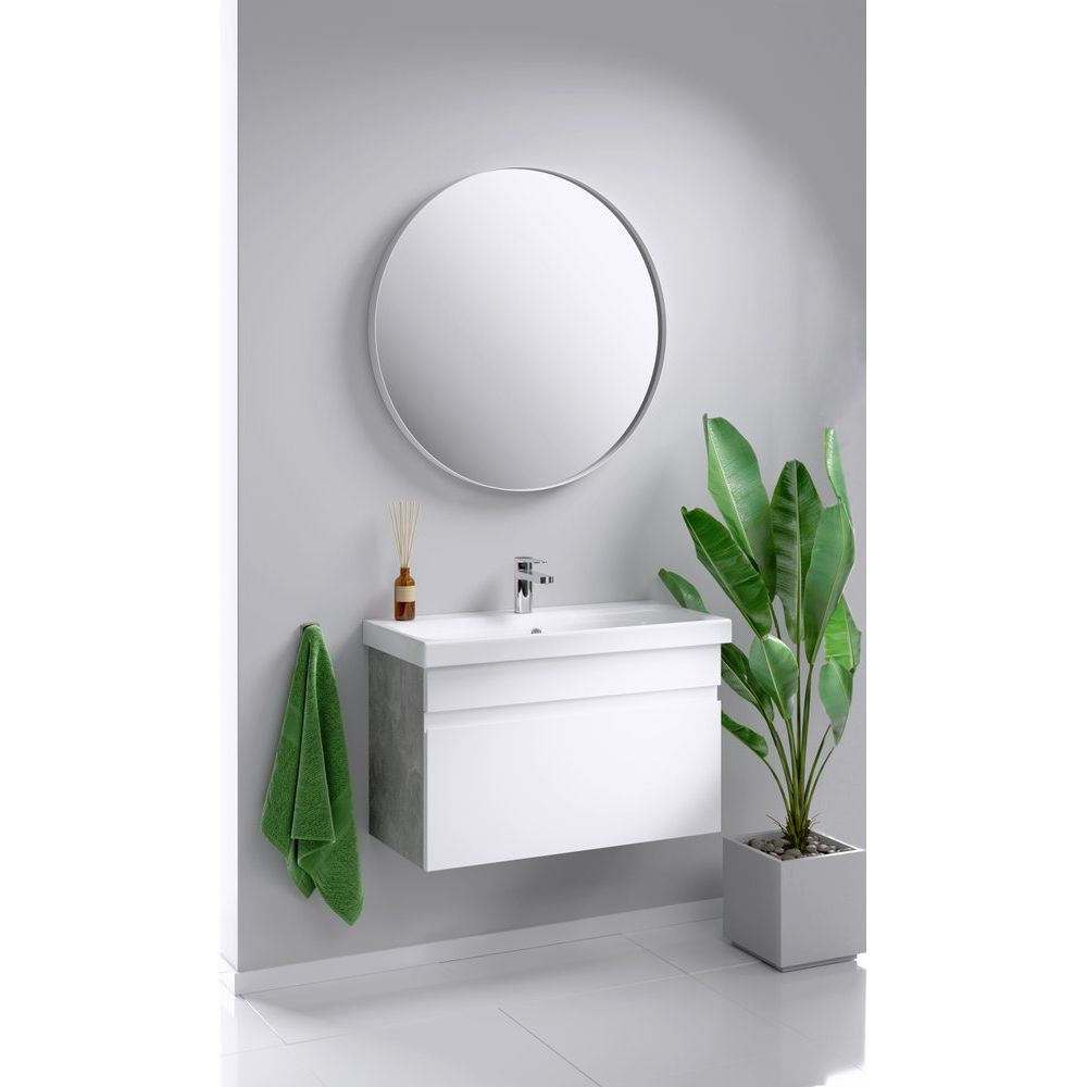 Тумба Aqwella Smart 80 бетон светлый имеет размеры 76,6x35,6x46 см и выполнена в подвесном варианте, что экономит пространство вашей ванной. Она оснащена механизмом доводчика для мягкого закрывания, а корпус из ЛДСП и фасад из МДФ покрыты прочной эмалью. В комплект включены удобные ящики для хранения.