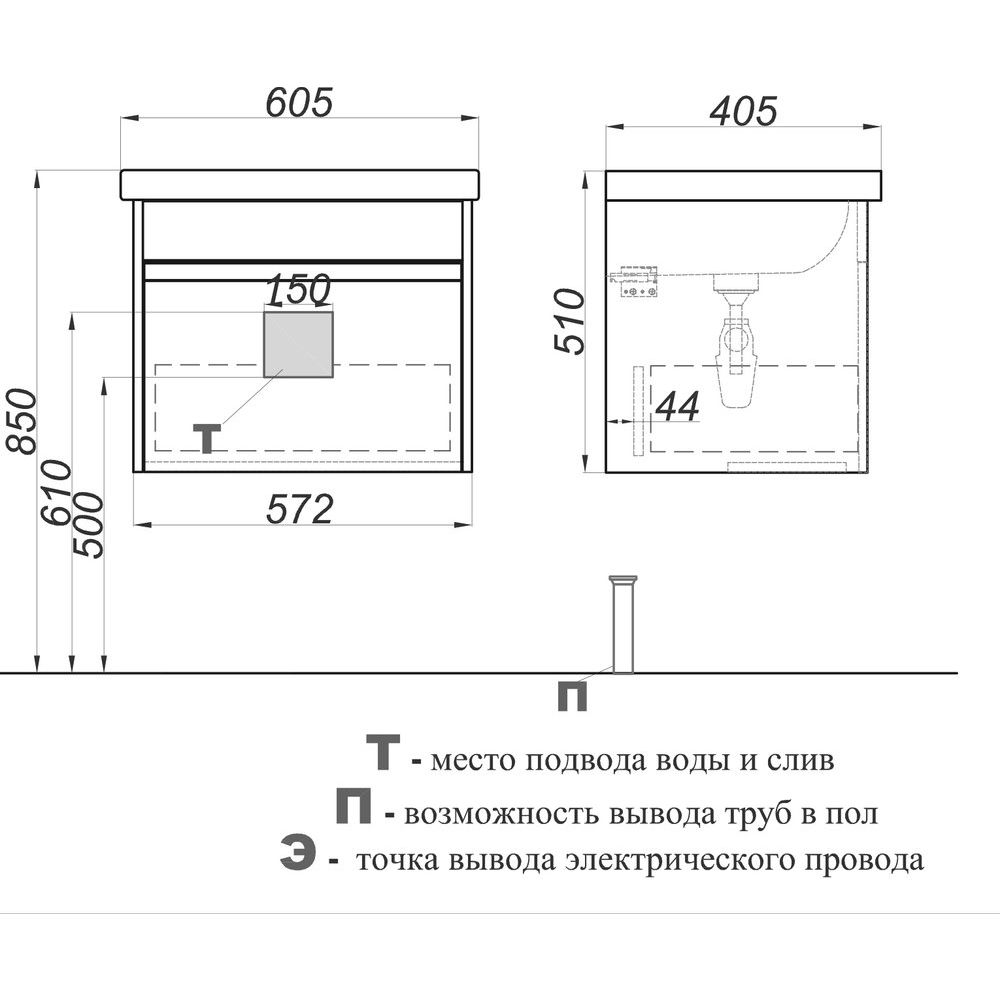 Тумба Aqwella Urban 60 обладает компактными размерами 57,2x38,5x46 см, что делает её идеальной для небольших помещений. Подвесная конструкция облегчает уход за полом под тумбой, а черная фурнитура добавляет стильного акцента. Два вместительных ящика снабжены механизмом доводчика, что обеспечивает плавное и бесшумное закрывание. Корпус и фасады изготовлены из ЛДСП с ламинированной поверхностью, что повышает устойчивость к влаге. Гарантия на тумбу составляет 2 года.