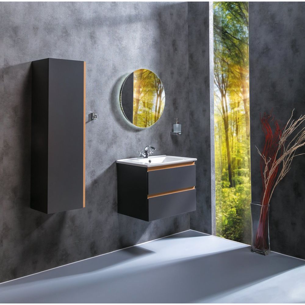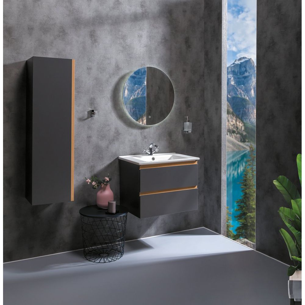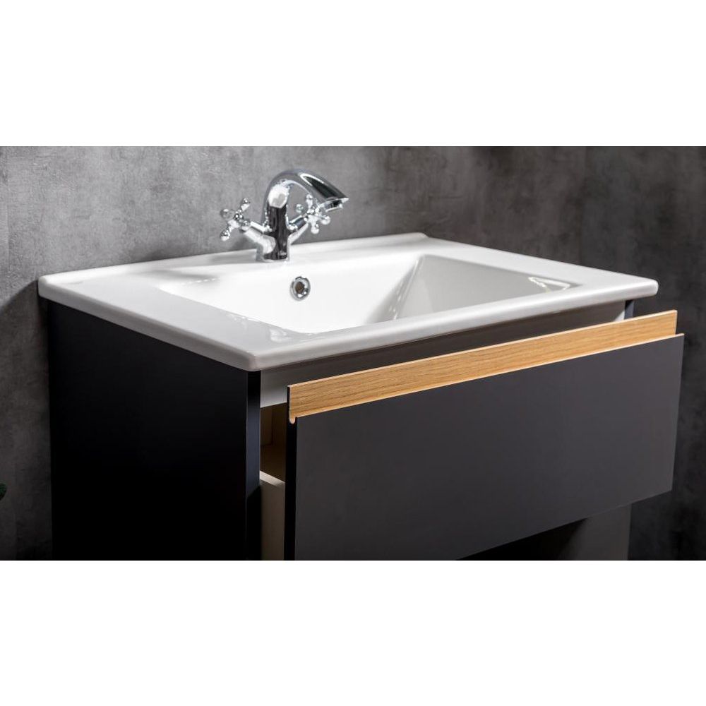 Тумба с раковиной Armadi Art Capolda 65 антрацит — это элегантное и практичное решение для вашей ванной комнаты, сочетающее в себе современный дизайн и функциональность. Предназначенная для создания комфортного и стильного интерьера, эта подвесная модель придаст вашему пространству утончённый и современный вид. Изготовленная из высококачественного ламинированного ЛДСП, она гарантирует долговечность и устойчивость к влаге, а механизм доводчика обеспечит удобство и плавность при пользовании ящиками.