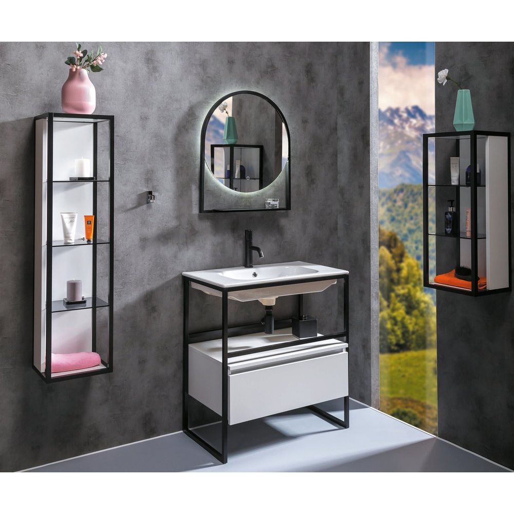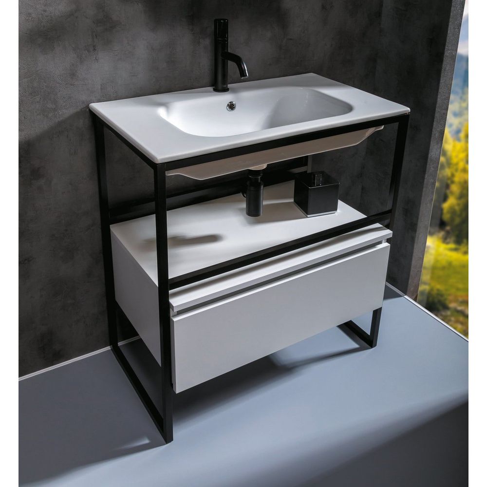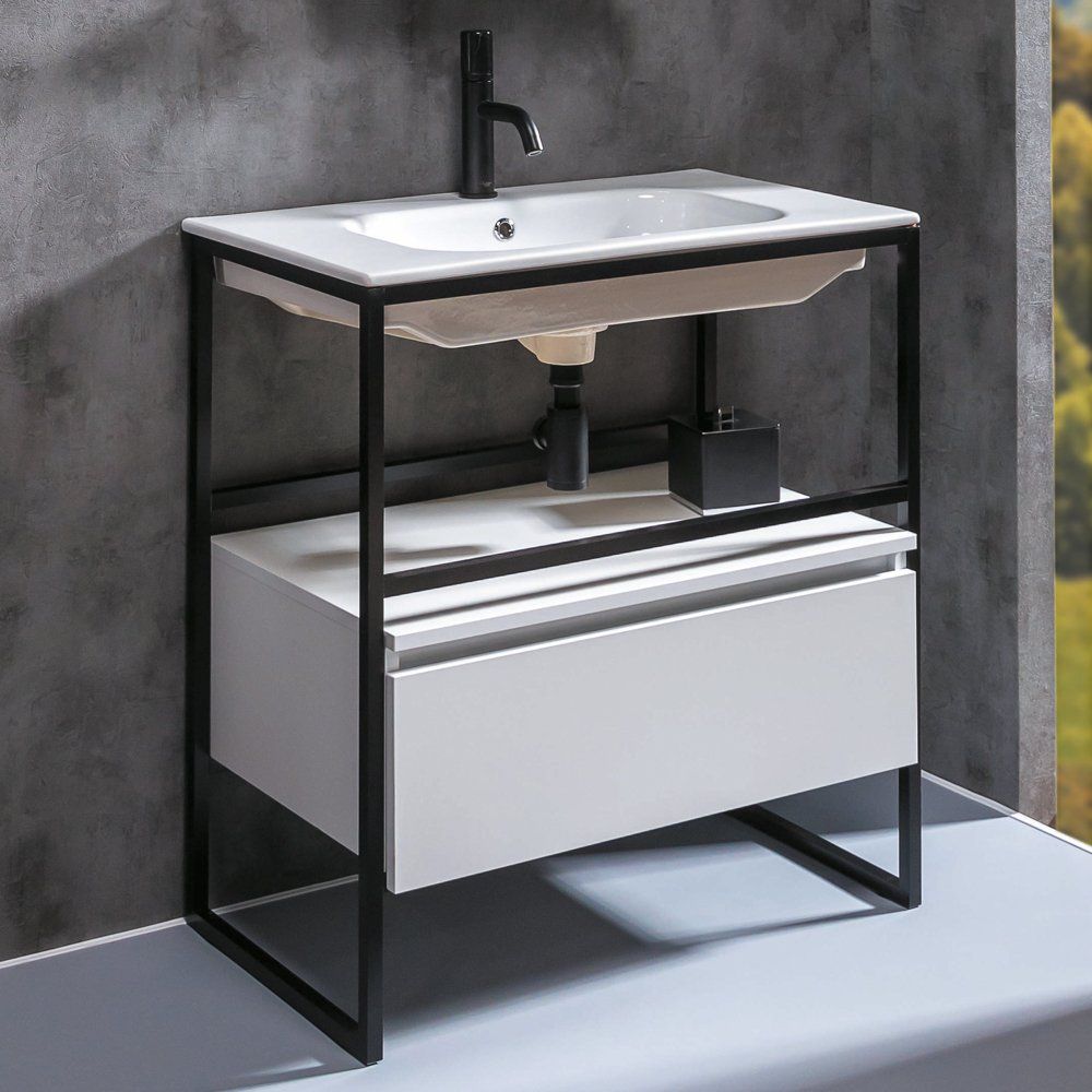 Основная тумба из коллекции Armadi Art Loft имеет размеры 79x44,5x85 см и предназначена для напольной установки. Ее прочный корпус и фасад выполнены из алюминия, а дизайн не предусматривает механизм доводчика, что однако компенсируется стильностью и надежностью.