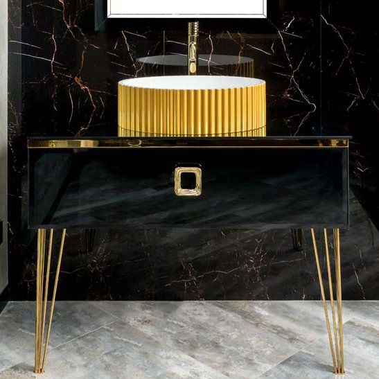 Тумба Armadi Art Lucido изготовлена с применением МДФ и стекла, что делает ее устойчивой к воздействию влаги и механическим повреждениям. Глянцевое покрытие выполнено с использованием эмали, а фасады покрыты акрилом, придающим им особую глубину цвета. Изделие подвесное, его размеры составляют 100x51x25 см, что делает тумбу особо вместительной даже при компактных габаритах. В комплект входит столешница из черного стекла с размерами 101x52x0,8 см и готовым отверстием под смеситель. Особо стоит отметить мебельные ручки из латуни и декоративный элемент из нержавеющей стали со вставками ЛДСП, добавляющие изделию эксклюзивности.