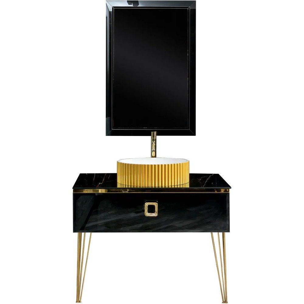 - Элегантный дизайн с черным глянцем — стильное решение для современной ванной.