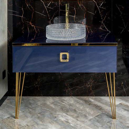 Ваша ванная комната может стать воплощением изысканного итальянского стиля с тумбой под раковину Armadi Art Lucido насыщенного синего цвета. Это не просто мебель, а настоящее произведение искусства, сочетающее стиль, функциональность и высокие технологии. Продуманный дизайн гармонирует с современными трендами, а золото ножек и ручек придаёт особый шарм и роскошь вашему интерьеру.