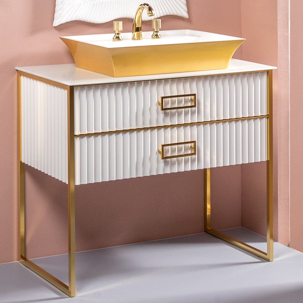 Хотите, чтобы ваша ванная комната засияла стильной элегантностью и практичностью? Представляем вам тумбу с раковиной из коллекции Armadi Art Monaco, которая объединяет в себе безупречное итальянское качество и изысканный дизайн. Это идеальный выбор для тех, кто ценит гармонию формы и функциональности. Благодаря сочетанию белой столешницы и золотой фурнитуры, эта мебель добавит нотку роскоши в интерьер вашей ванной комнаты, делая ее уютной и современной одновременно.
