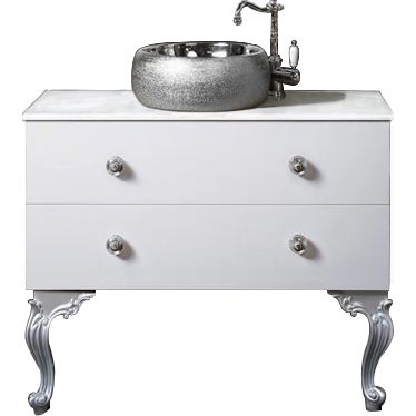 Мебельная раковина цвета серебра, размером 67x45 см, выполнена из искусственного камня и совместима с сифоном диаметром 3.2 см. Отдельно необходимо приобрести донный клапан и учитывать параметры тумбы при выборе сифона.