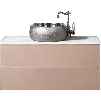 Мебельная раковина размером 67x45 см также выполнена из искусственного камня и дополнена отверстием под смеситель. Для функционирования необходим отдельный донный клапан. Гарантия на раковину — 1 год.
