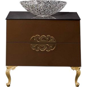 Основой набора является тумба Armadi Art NeoArt 80 с шоколадным корпусом из МДФ и акриловым покрытием. Внутренние ящики выстланы эко-кожей и оснащены системой доводчиков от Hettich для мягкого закрывания. Тумба подвесная, размером 80x50x48 см, что обеспечивает компактное размещение. Комплект также включает в себя столешницу Armadi Art Monaco из черного стекла, размером 81x52x0.8 см, которая подготовлена для установки смесителя. Мебельная раковина выполнена из искусственного камня в серебристом цвете, с размерами 67x45 см, имеет отверстие для смесителя и рассчитана на сифон диаметром 3.2 см. Комплект декоративных ножек выполнен из полиуретана и имеет высоту 35 см. Все фурнитурные элементы имеют гарантию 1 год.