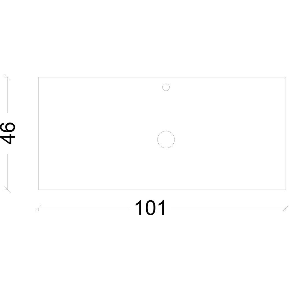 Столешница Armadi Art Vallessi 100, размером 101x46x1 см, выполнена из композита и имеет готовое отверстие под смеситель. Она включает одну готовую выемку и позволяет создавать индивидуальные решения для вашей ванной комнаты.