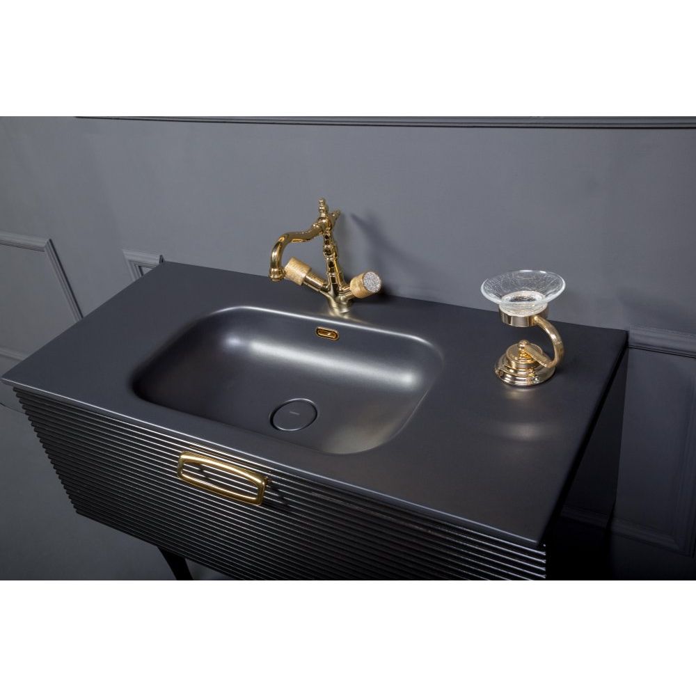 Раковина Armadi Art Vallessi 100 сделана из качественного фаянса в антрацитовом цвете. Ее размеры – 101x46 см, и она снабжена встроенным сливом-переливом и декоративной накладкой на слив. Для удобства монтажа предусмотрено одно отверстие под смеситель.